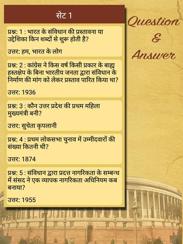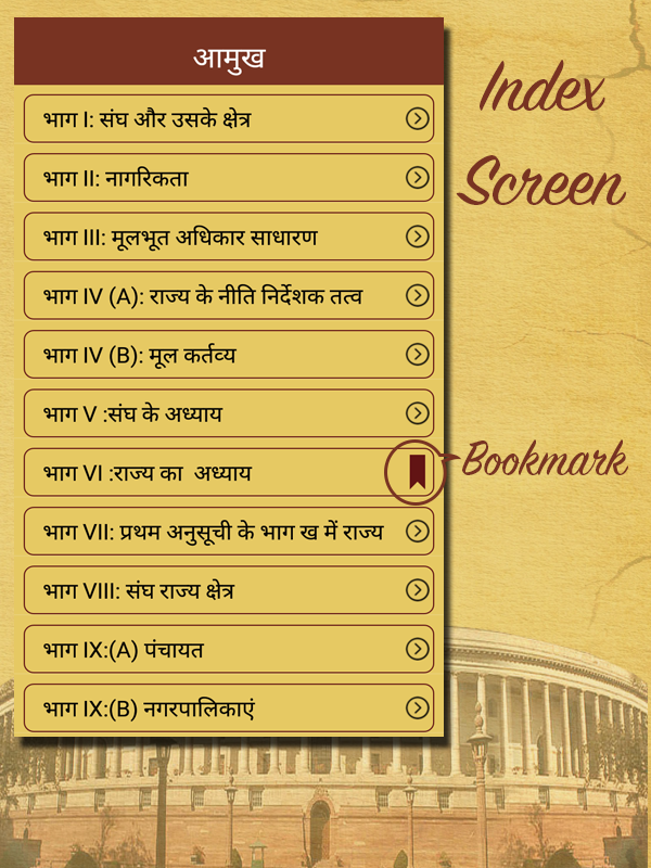 Bhartiya Samvidhan application contains the information(Notes & MCQ) about constitution of india in Hindi Language.