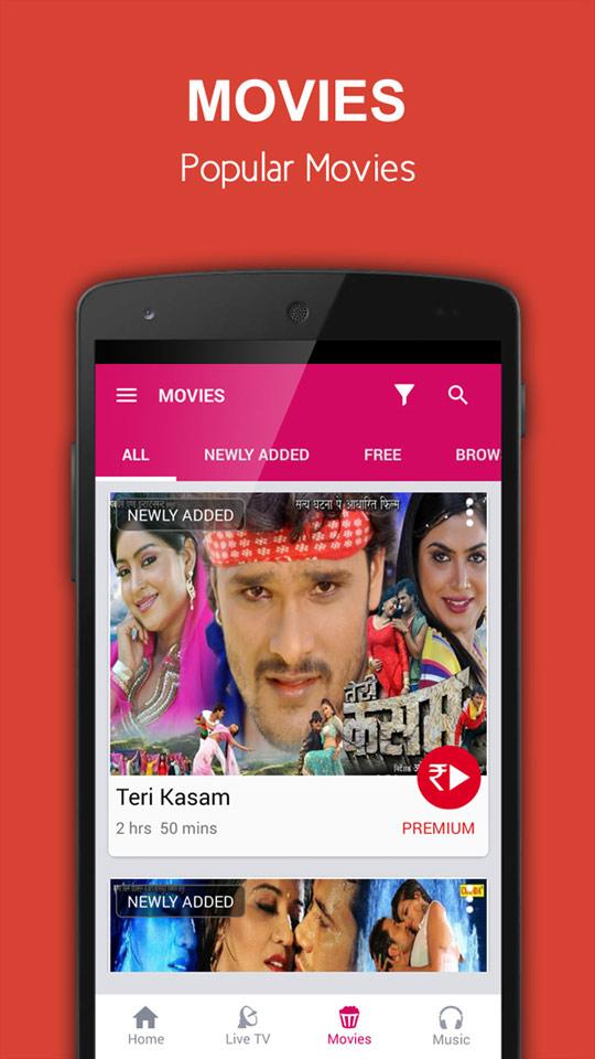 • Watch Live TV Channels- Anjan TV, Sangeet Bhojpuri, Oscar Movies, Big Ganga, Dhoom Music and many more.