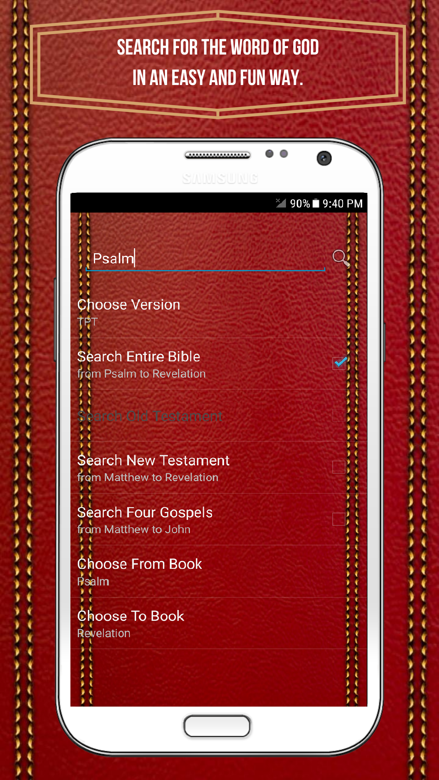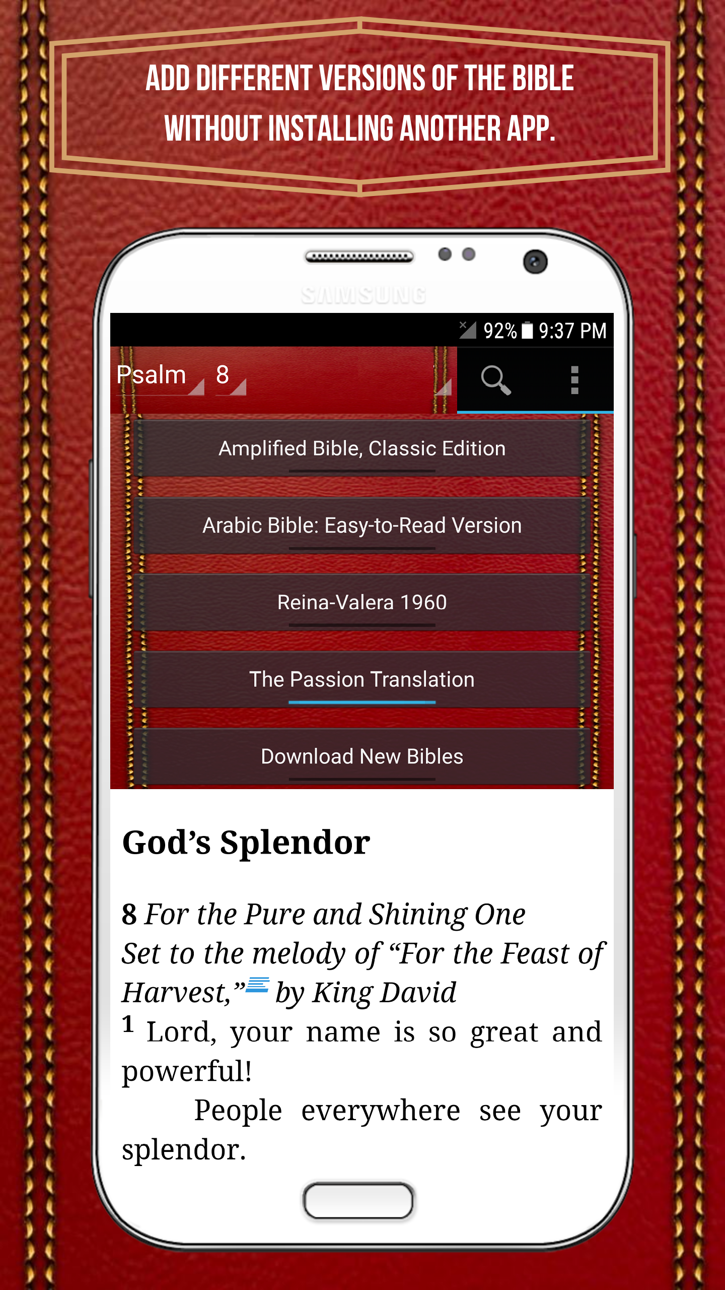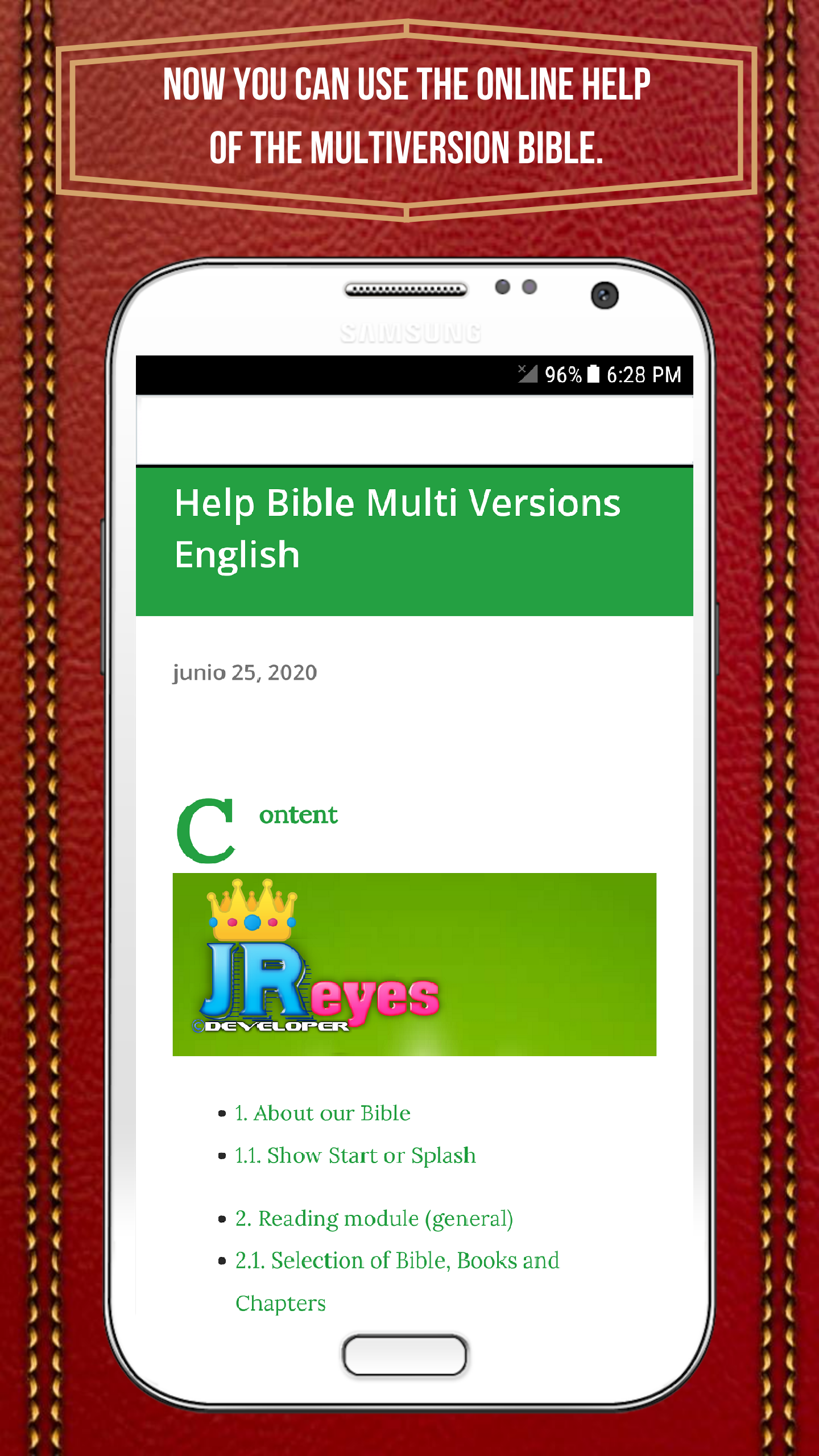 ✝️ Day and night mode to read the Bible. ✝️ Adjust the text size. ✝️ Add verses to favorites. ✝️ Bookmark your favorite verses and add notes. ✝️ It does not need an Internet connection for its operation. ✝️ Share your verses on social media with your brothers and sisters in faith ✝️ Advanced verse search. ✝️ Install or move the Bible from or to the SD memory. ✝️ Help. ✝️ Share daily word.