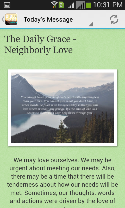 Are you looking for Bible Verses Daily? Free and works offline? - This app is equipped with verses for the soul for days - Daily verses feed ★ HIGHLY RECOMMEND ★ This app is for people who wants to have a daily feed of verses to inspired them everyday. ★ OUR MISSION ★ Bible Verses Daily aims to touch is subscribers soul each and everyday, drawing them closer to God each and everyday. ★ ABOUT Bible Verses Daily ★ If you are looking to be encouraged and inspired everyday, then read the bible. For daily nourishment, this app is the key. Daily bible verses help people to communicate with God on a daily basis. Deal with stress in your life only by the word of God. ★ APP FEATURES ★ - Daily Verses Feed - Daily Proverbs - 31 Days Holy Program - 31 Days Food for the Soul - Best known bible quotations, verses and scriptures - Share verses to your family and friends - Simple and easy to use user Interface ★ OUR APP HAS ALREADY HELPED MILLIONS OF PEOPLE TO ★ - Be filled with Gods love thru his words - Find the true meaning of life thru the 31 Days Program - Stay relevant in faith - Bible verses daily helps you to stay connected to God ★ WHY DOWNLOAD AND KEEP THIS APP? ★ This app will keep you connected to Christ. By his words you should reflect on each and every verse you read and see on this app on a daily basis. Download the Official Free app of Bible Verses Daily Today and be a blessing to others.
