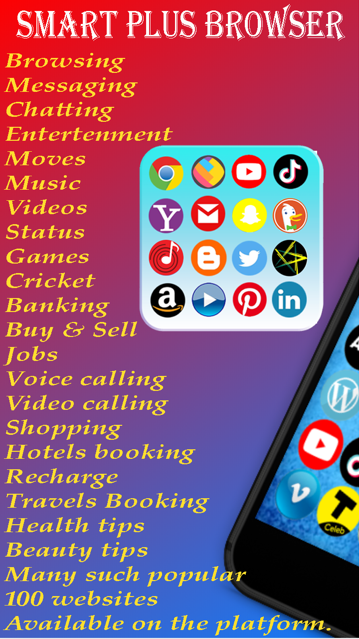 Big Browser - Web Browser, UC Web Browser Big Browser is a great app. It has a collection of multiple websites simultaneously, it saves the user's data and memory. The Big Browser is capable of supporting all languages. What is unique about Big Browser Big Browser is more powerful than other browsers Big Browser multi-tab opener system and personal bookmark system available. Stops annoying from showing again Night mode option and power saving mode saves 50% battery. Password protection system is also available along with providing protection of personal information and personal data of the user. Saves every downloaded item in direct memory with fast speed downloading Big Browser Advance retains search history by rotating the screen with full screen Browsing, Messaging, Chatting. Video Status, TV Entertainment, Moves. Music, Games, Cricket, Banking, News. Buy & Sell, Jobs, Voice calling, Video calling. Shopping, Hotels booking, Recharge, Travels Booking. Health tips, beauty tips, business, love. Style,, drawing, photography, design,UC News & All Social Media Website. Many more such websites are available.
