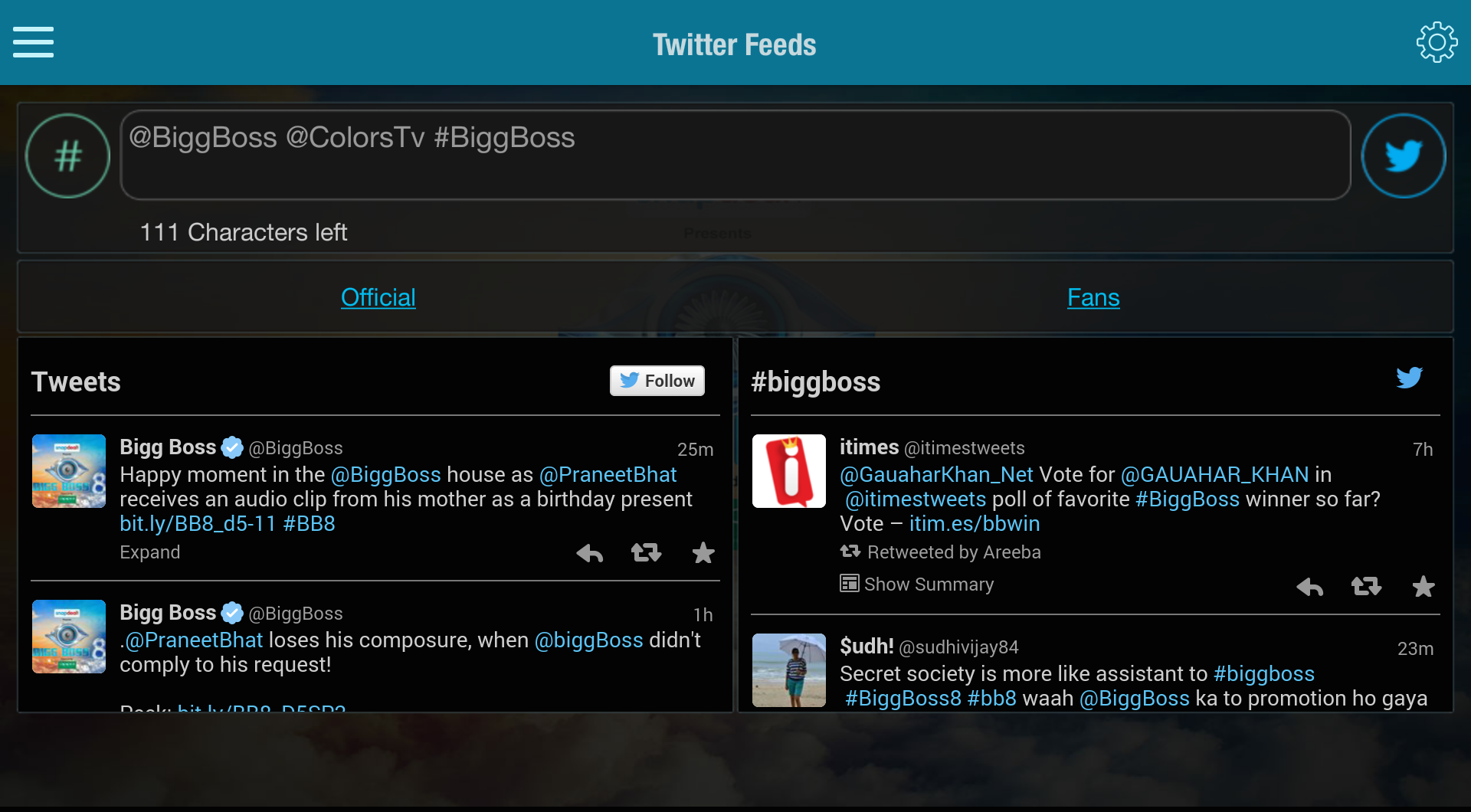Bigg Boss (Package Name: com.viacom18.biggboss) is developed by ColorsTv and the latest version of Bigg Boss Official 2.2 was updated on January 7, 2015. Bigg Boss Official is in the category of Entertainment. You can check all apps from the developer of Bigg Boss Official. Currently this app is for free. This app can be downloaded on Android 2.3.2+ on APKFab or Google Play. All APK/XAPK files on APKFab.com are original and 100% safe with fast download.