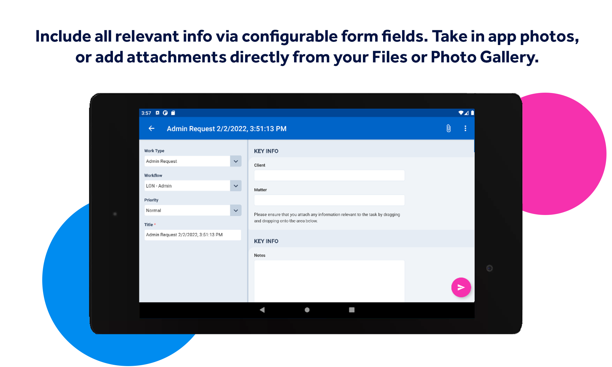 Create any type of Task from a list of configurable Work Types, designed with your business in mind. View your work list and track live updates for all your tasks.