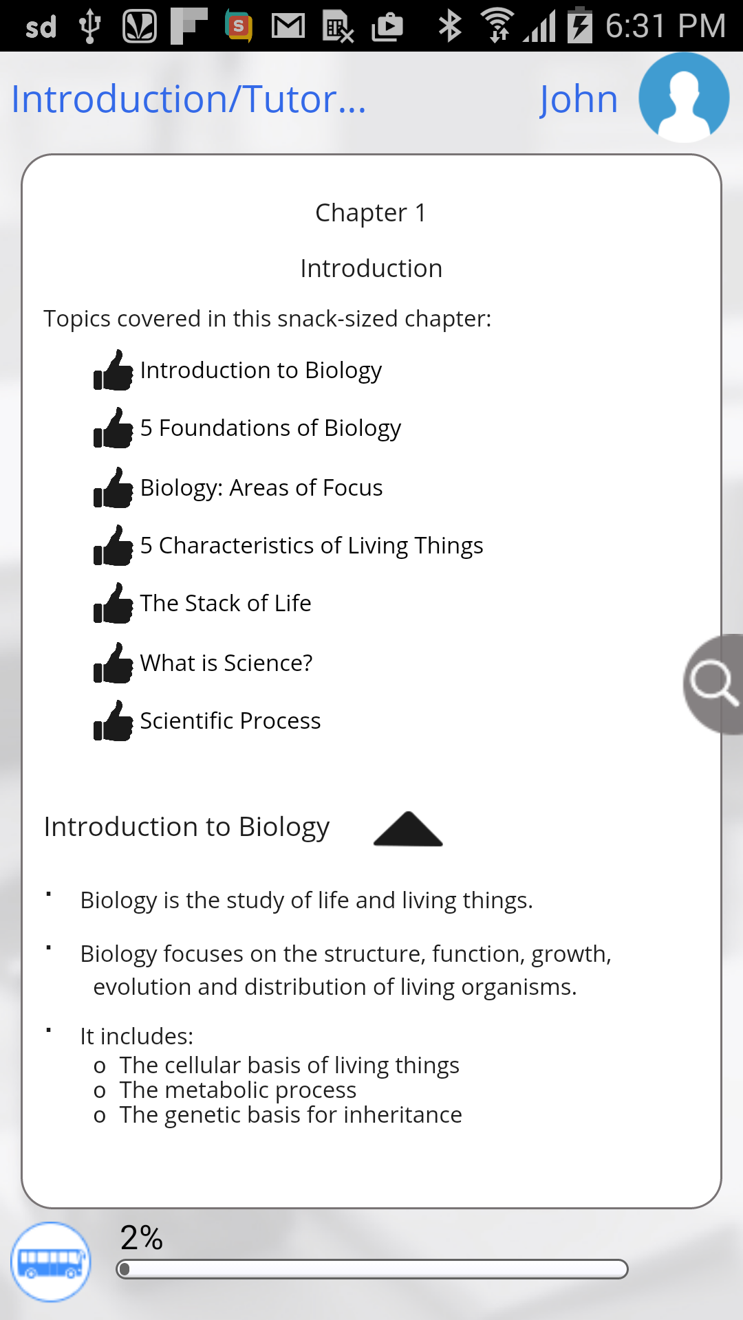 You have limited access to the content provided. For full access to the content, please login and purchase this application. This app provides a quick summary of essential concepts in Biology and Human Body Anatomy by following snack sized chapters: