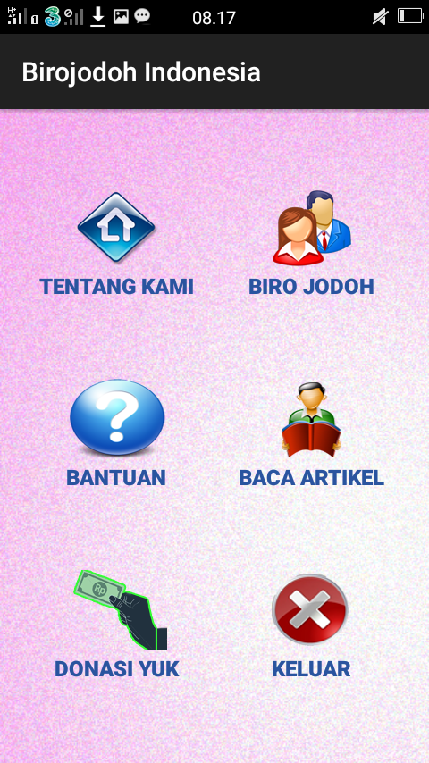 Birojodoh Indonesia (Package Name: id.birojodoh) is developed by id inc. and the latest version of Biro Jodoh 1.0 was updated on December 1, 2016. Biro Jodoh is in the category of Dating. You can check all apps from the developer of Biro Jodoh. Currently this app is for free. This app can be downloaded on Android 2.2+ on APKFab or Google Play. All APK/XAPK files on APKFab.com are original and 100% safe with fast download.