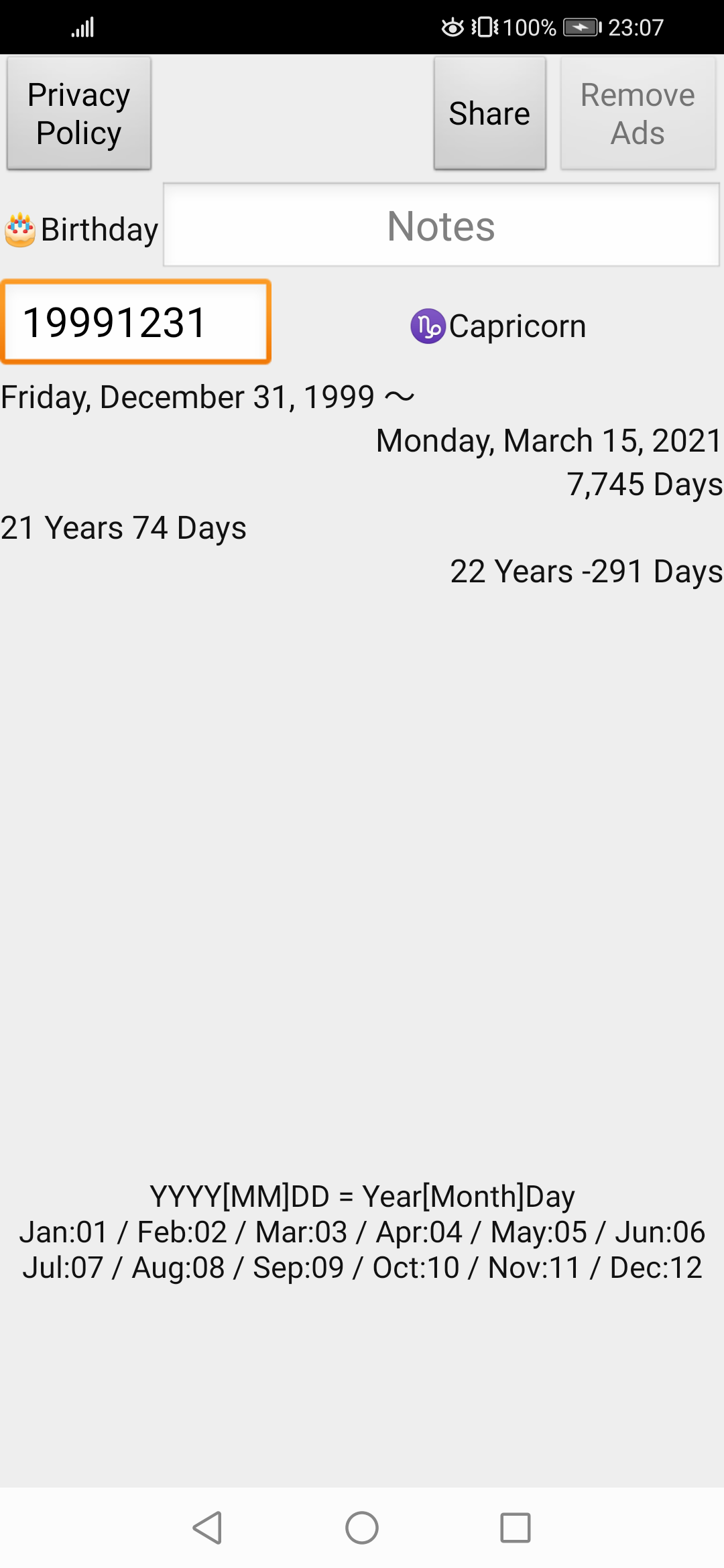 Birthday Management Calculator