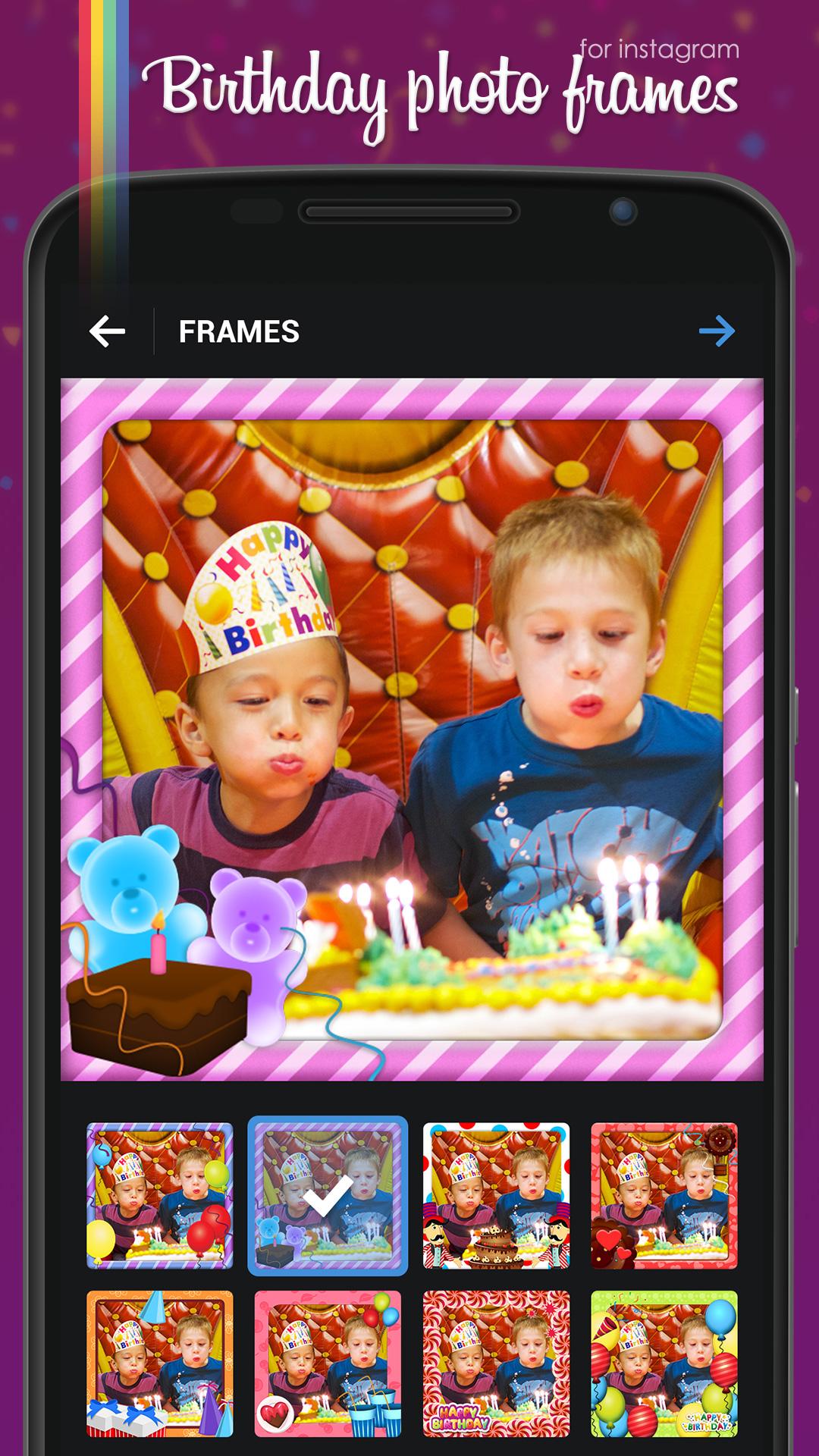 Listening to your friends singing Happy Birthday to You and eating your birthday cake; there is no better day than your birthday! LET'S MAKE YOUR B-DAY EVEN MORE INTERESTING BY MAKING UNFORGETTABLE MEMORIES WITH BIRTHDAY PHOTO FRAMES FOR INSTAGRAM™! Your happy birthdy frame images will be amazing with these cool birthday photo frames and you will want to share them with your friends and followers on social networks!