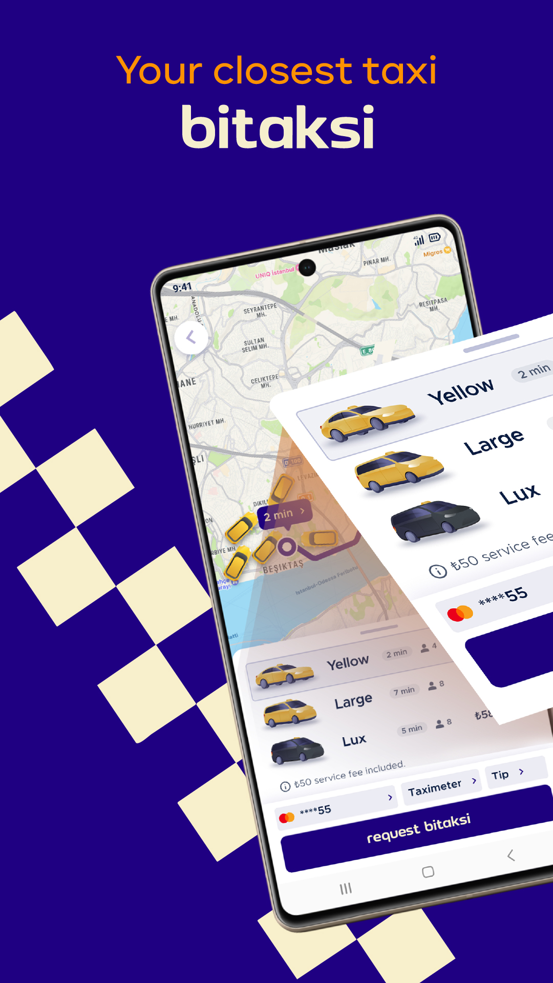 Fast matching, top-rated drivers, and easy payment are waiting for you! Why Bitaksi? 🚕 The closest taxi: Fast, smart matching connects you with the closest driver. ⭐ Top rated drivers: Ride safely with the best drivers, rated by millions of bitaksi users. 📍 Share your trip: Easily share your live trip details with loved ones—let them know you’re safe with bitaksi. 💳 Fast and secure payments: Your payments are always safe with Masterpass infrastructure. ✍🏻 Rate your experience: Your feedback matters. Rate your driver and help us improve every trip. 📞 24/7 customer support: Need help? bitaksi’s customer support team is always ready to assist you. ✨ Large taxi comfort: Travel with ease in spacious 8-passenger taxis—perfect for larger groups. 💎 Luxury taxi privileges: Enjoy premium rides with extra legroom and stylish vehicles. 🐾 Pet taxi: Travel comfortably with your pet by your side.