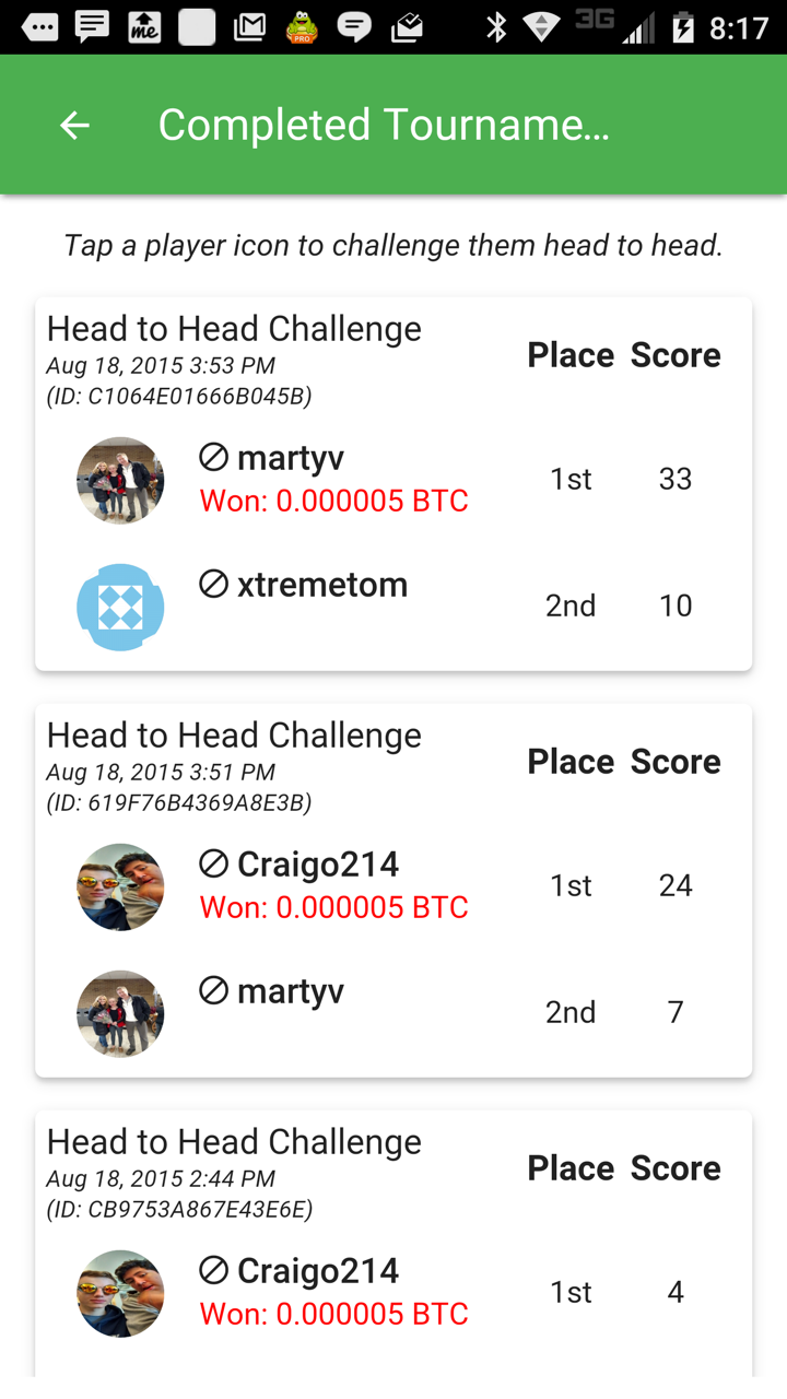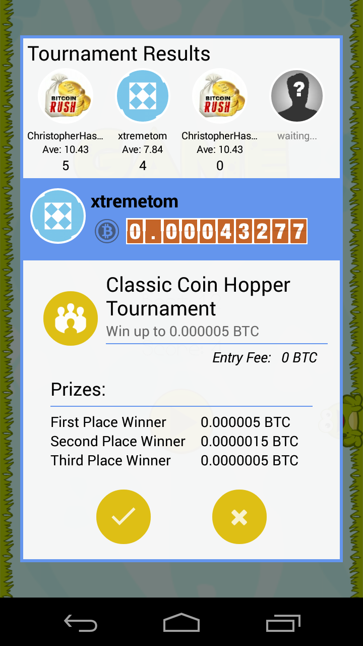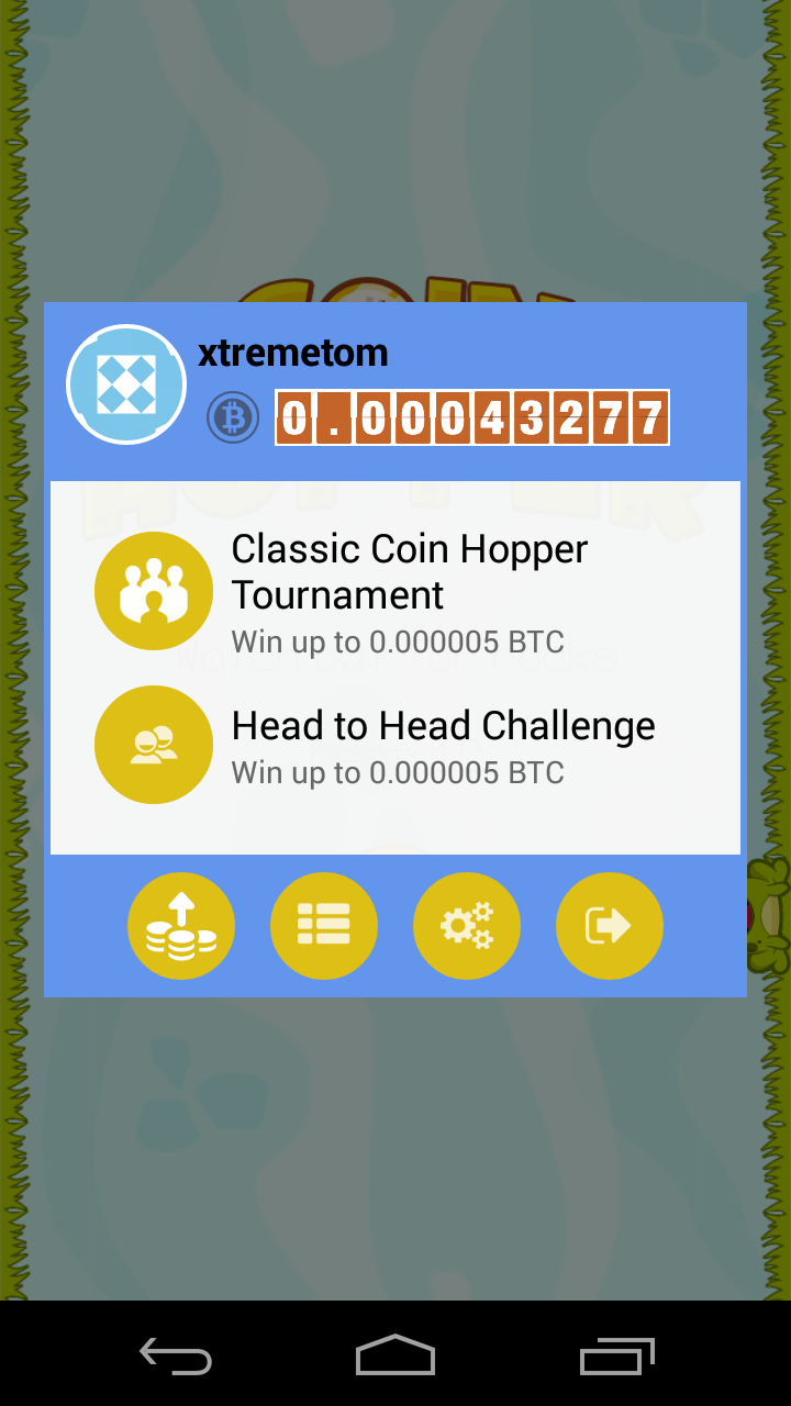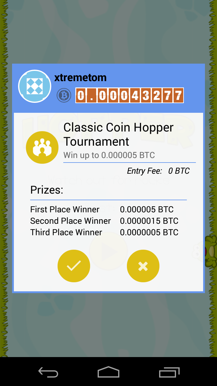 The great thing about Bitcoin Hopper is that you are competing with others to win FREE Bitcoin! Enter 4-way tournaments where the top three players win, or compete head-to-head against friends where winner takes all!