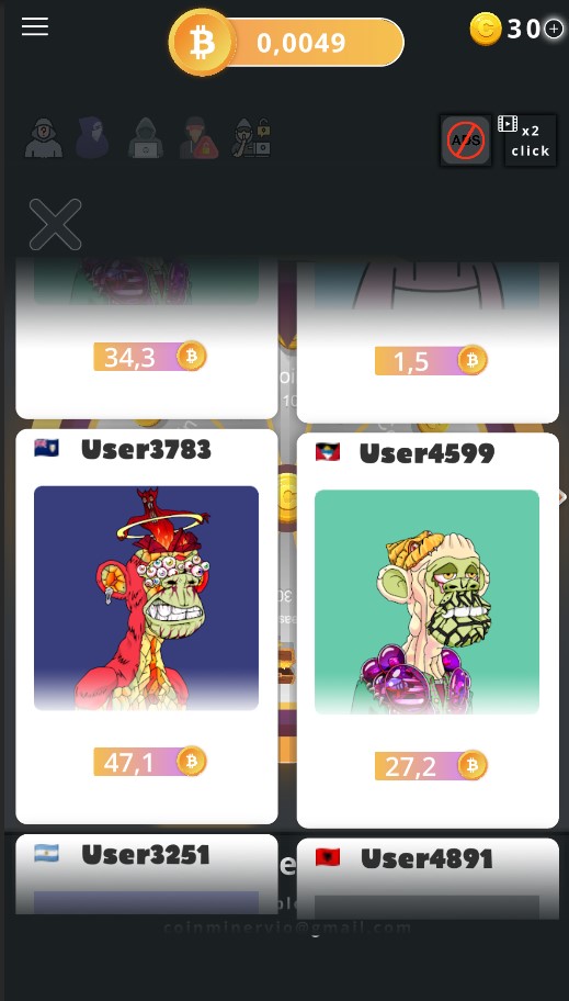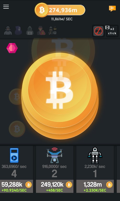 💰 Your coins will increase at the top of the screen. The amount of these coins will be necessary for buying some times to mine bitcoin.