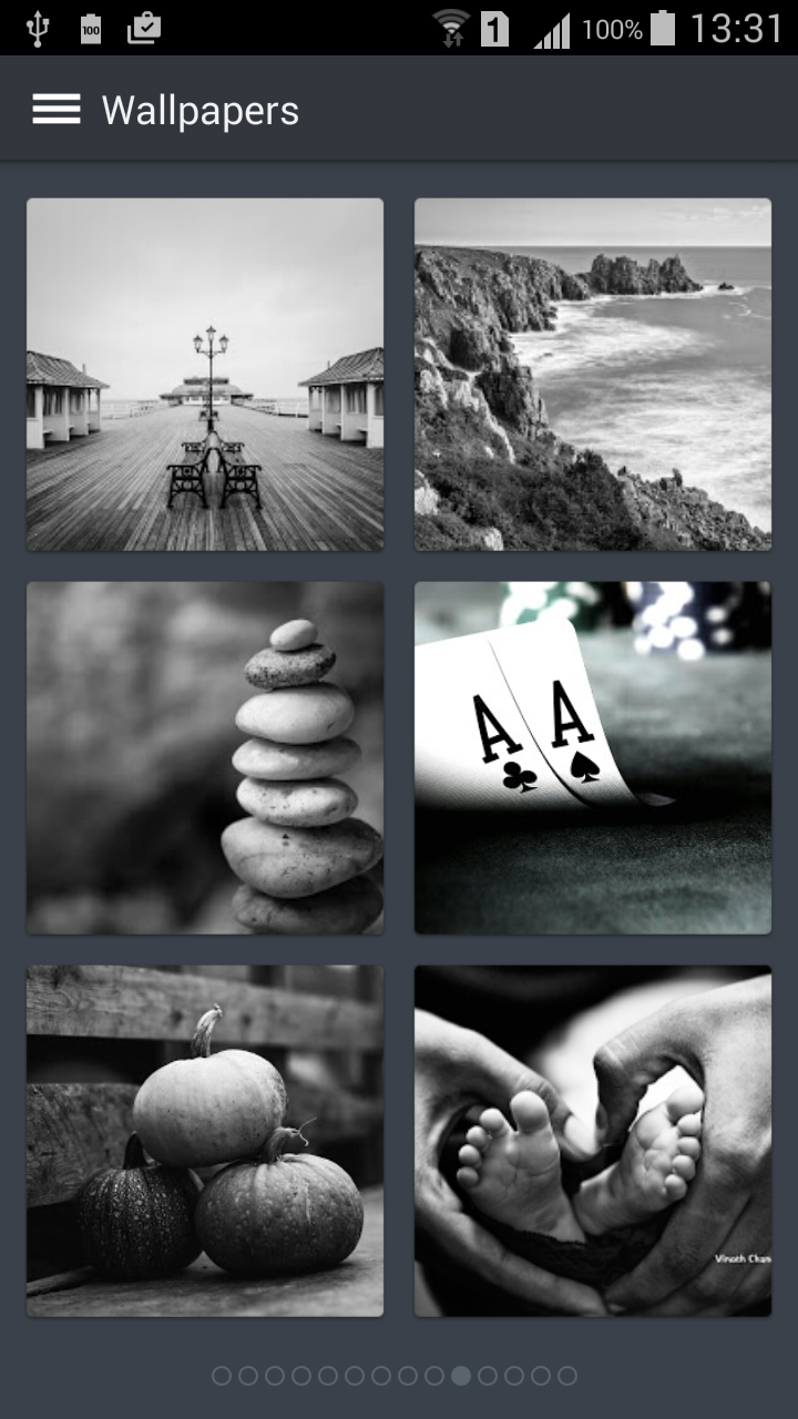 Photos in Black and White Wallpapers are licensed under Public Domain or Creative Commons licence. Credits to authors are provided inside the app.