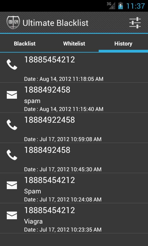 Ultimate Blacklist is a communication tool for anyone who uses phone calls, sms or mms that helps people be productive and do not be disturb by marketing or unwanted calls, sms or mms. Protect your privacy and block undesired calls, SMS or MMS with Ultimate Blacklist which represent flexible call blocker, SMS, MMS filter! It will save you from unwanted calls, unwanted text messages and marketing numbers. Ultimate Blacklist allows you to create and manage black list of unwanted contacts and block their calls and sms. You can add numbers to the black list in various ways: - directly enter number, - choose number from your contacts, - recent calls or messages Ultimate Blacklist provide various block modes. Its includes: - Block blacklist, except whitelist - Block only blacklist - Block all phone activity, except whitelist - Block all phone activity, except number is in contact book - Block all phone activity, except number is in whitelist or contact book. What is more, Ultimate Blacklist supports non-numerical numbers which are often used in spam SMS or MMS! You can just disable non-numerical numbers and sms and mms would be blocked immediately. The great news are that if you add this number to white list you can still view it. When SMS, MMS or call is blocked you can either get a notification or make Blacklist to work in silent mode. Choose which way is most convenient for you! Ultimate Blacklist have a backup to save all your settings and logs and protect them from being lost. You can transfer your settings over all your devices easily, or just send it to email and view in any worksheet application such as Microsoft Excel. Also application have a "Silence time" feature, this means you can create time intervals to not disturb you and Ultimate Blacklist would block all phone activity in this time. In case when you would not want to anyone view you history, Ultimate Blacklist have a password protection to protect you privacy. Post your issues: https://bitbucket.org/sagens/blocker/issues
