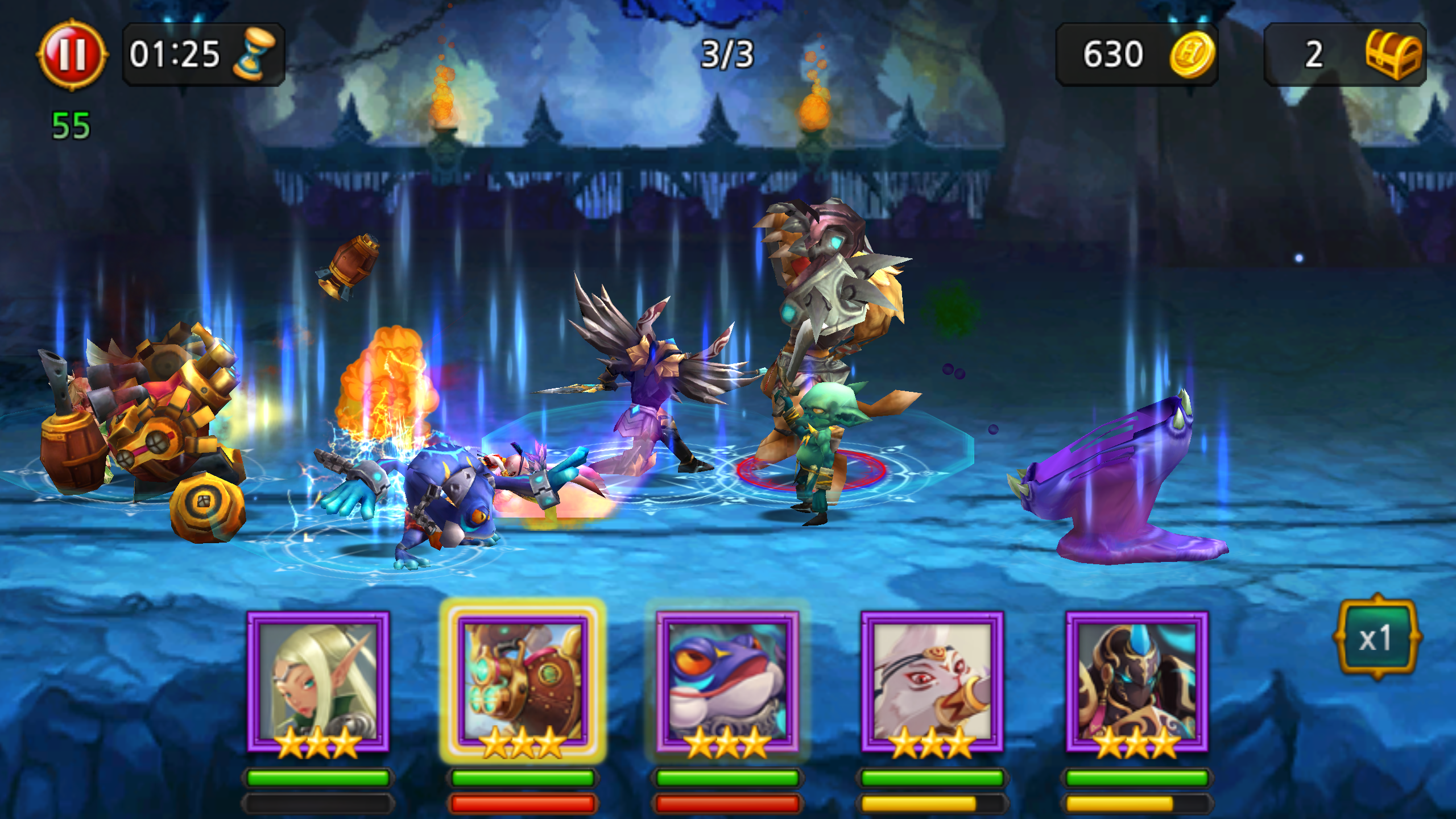 Players can compete against friends or other players with the heroes that they've trained. They can also enter a 5 against 5 battle in the Stadium to test their skills. In the Arena, a new match mode, players can engage in a 2 against 2 survival-type match! Show others just how strong your heroes are in Blade Knights!
