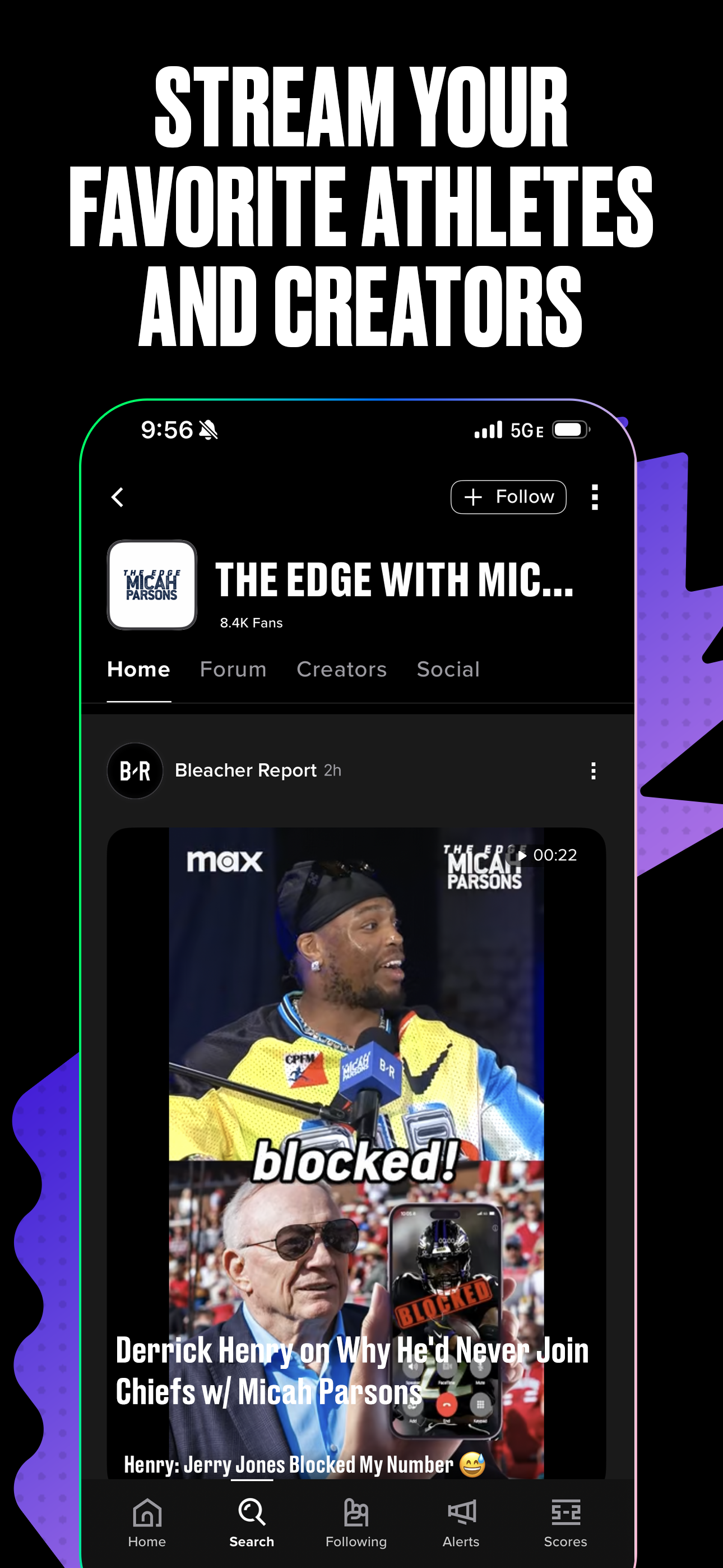 Up your sports fandom with the Bleacher Report app – fast sports alerts, sports scores, & exclusive content covering your favorite teams. Beyond scores & sports news, the B/R app is the destination to share your hottest takes & watch the next voices in sports news & culture with exclusive Bleacher Report shows & live content. Scroll through your favorite sports highlights, videos, articles, community posts, and more with the B/R app.