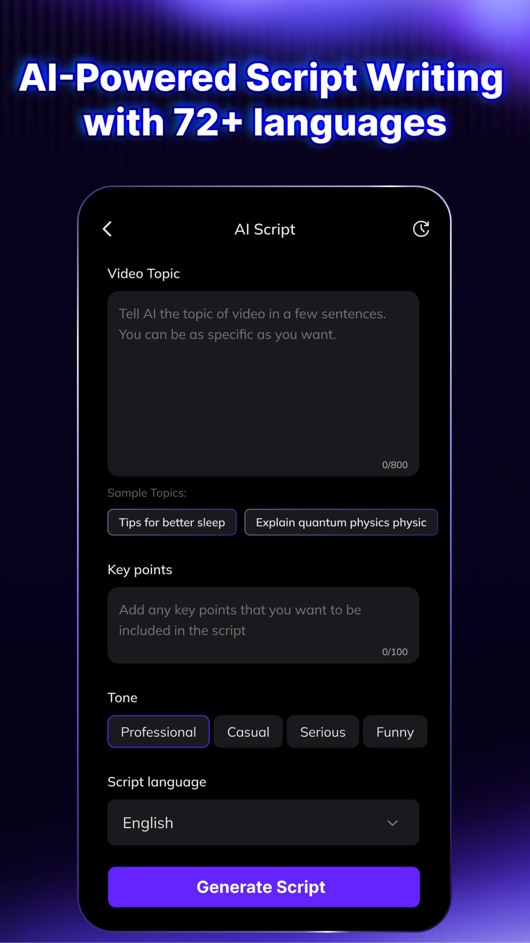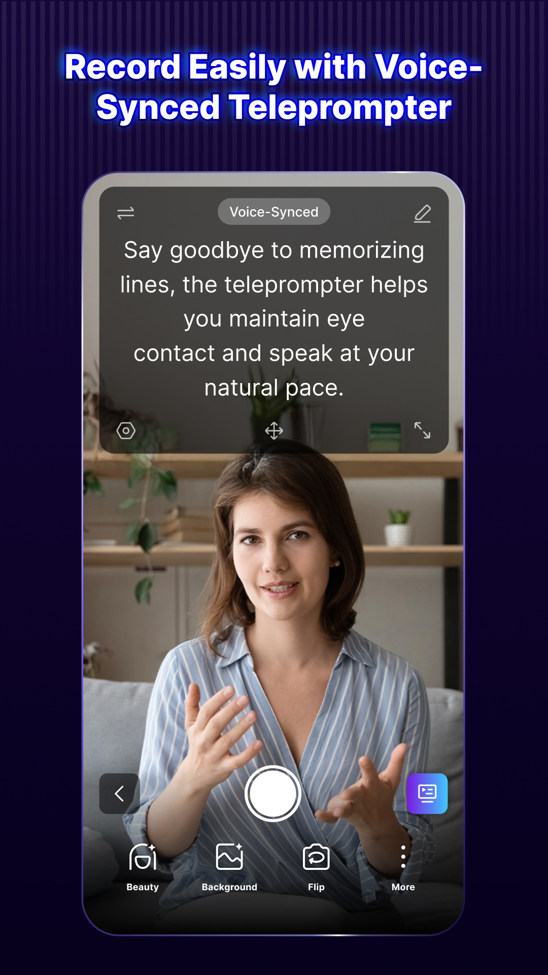 - Teleprompter that auto-scrolls in sync with your speaking pace