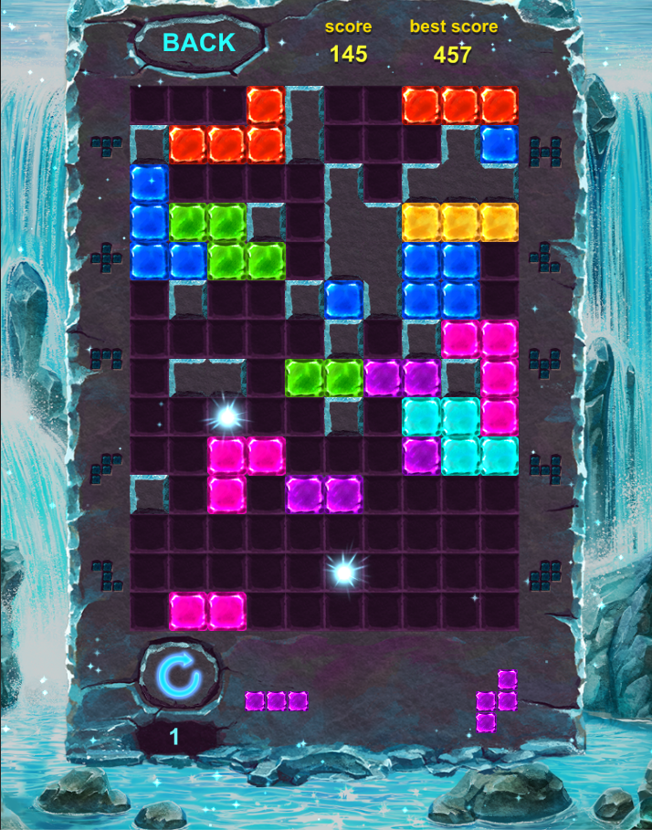 The goal, drop blocks on board 14x10 to create and destroy complete lines on the screen vertically and horizontally. Do not forget to save the jewel blocks from filling the screen in this addictive puzzle game. Crush more blocks, Get more scores.