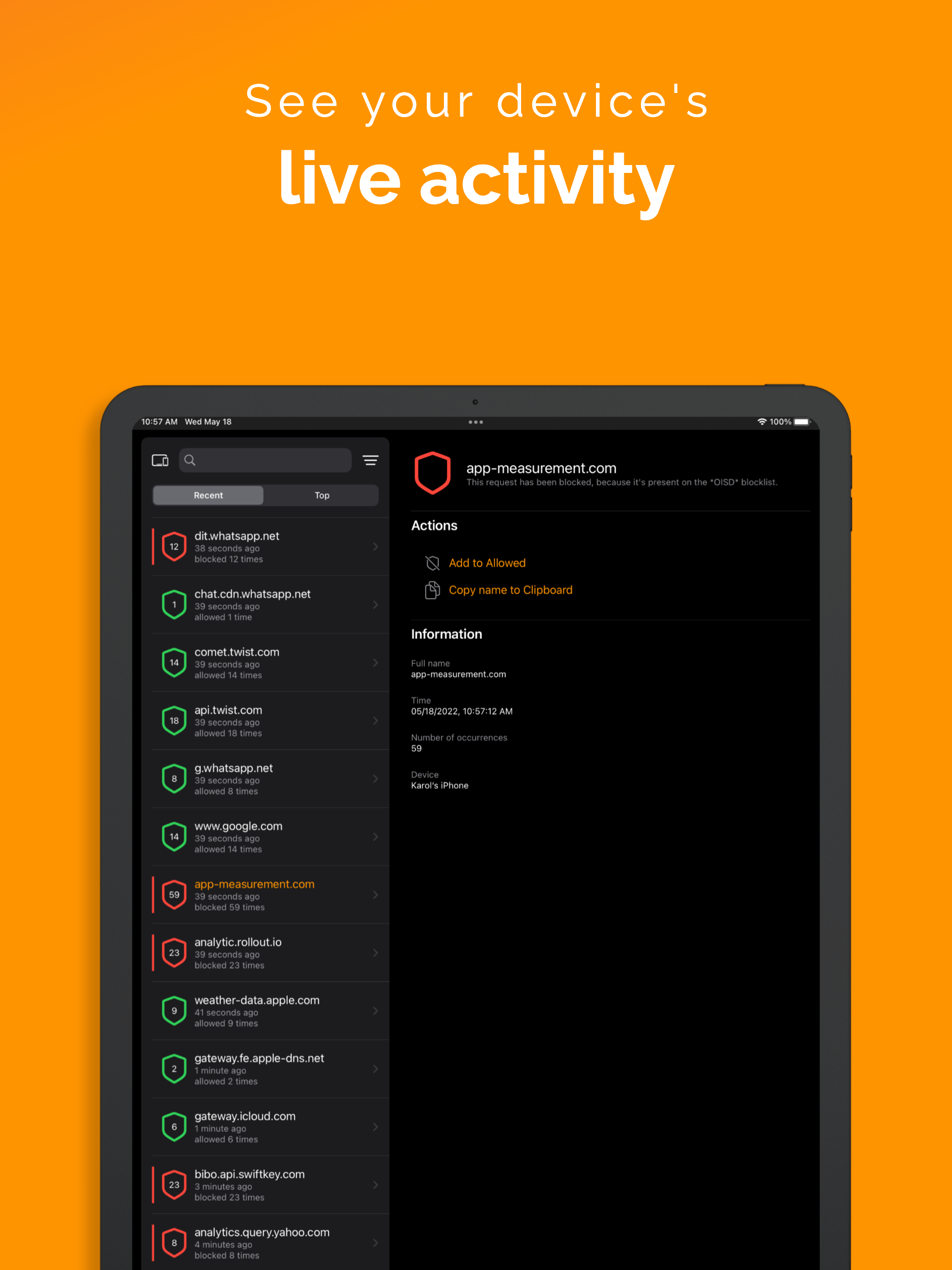 Meet Privacy Pulse: your new dashboard for understanding who your phone talks to. Explore recent activity, top blocked/allowed domains, and dive into detailed subdomain breakdowns.