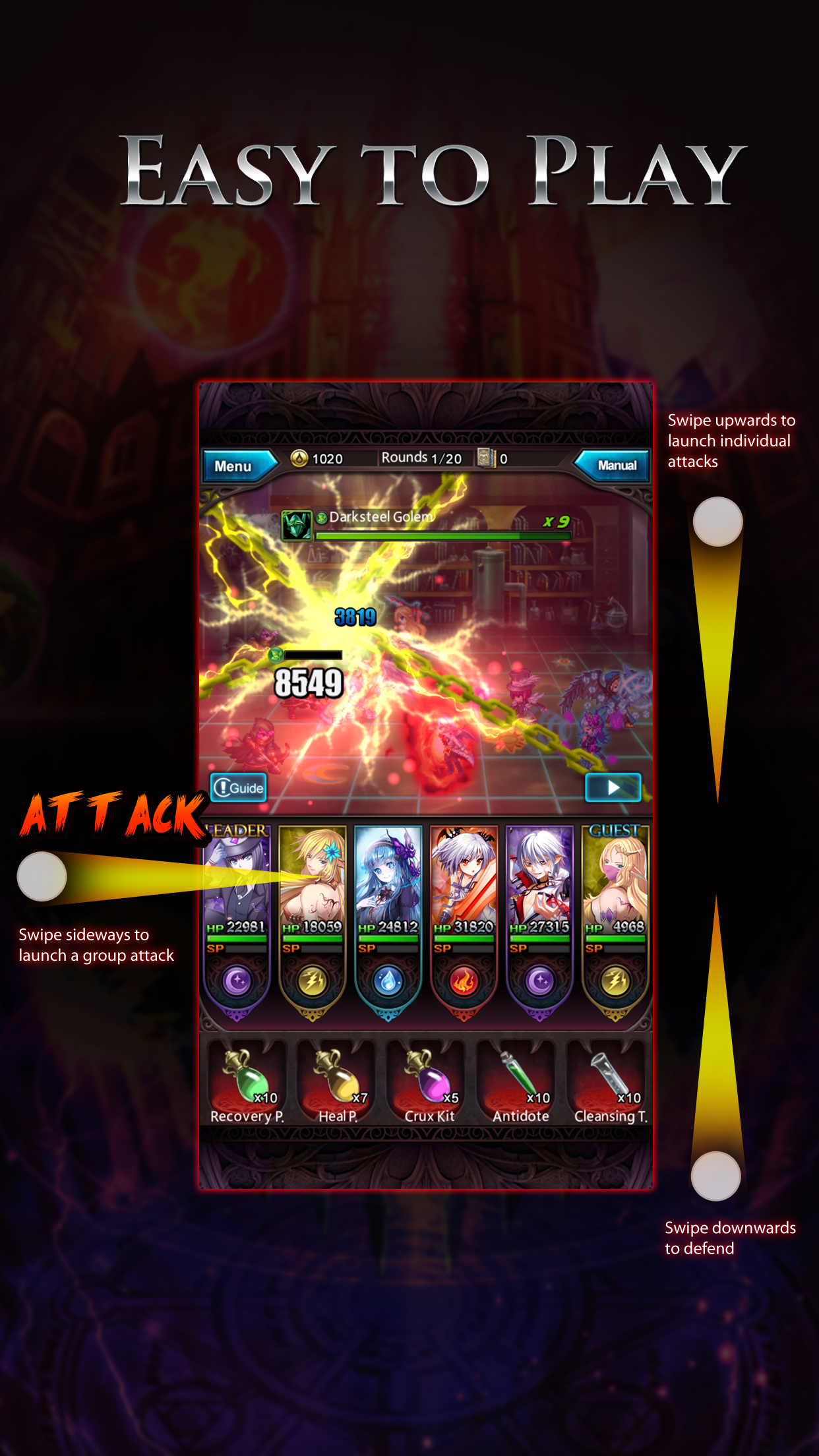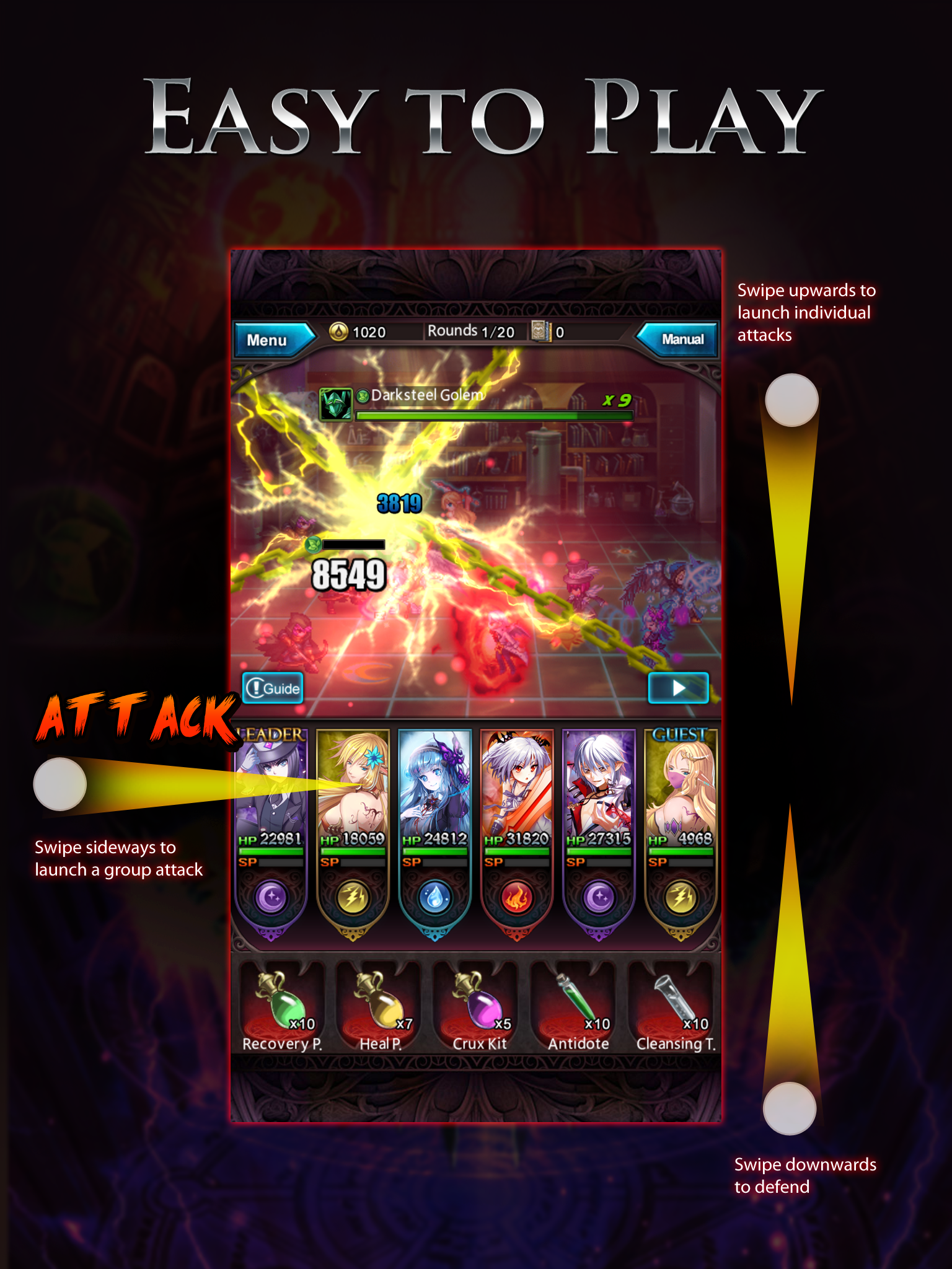 Tap and swipe across the screen to launch spectacular attacks! It’s that easy.