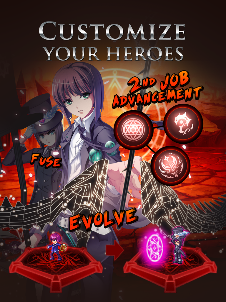 Watch your heroes progress through multiple job advancements! Redistribute their stats to your liking and even change their job specializations!