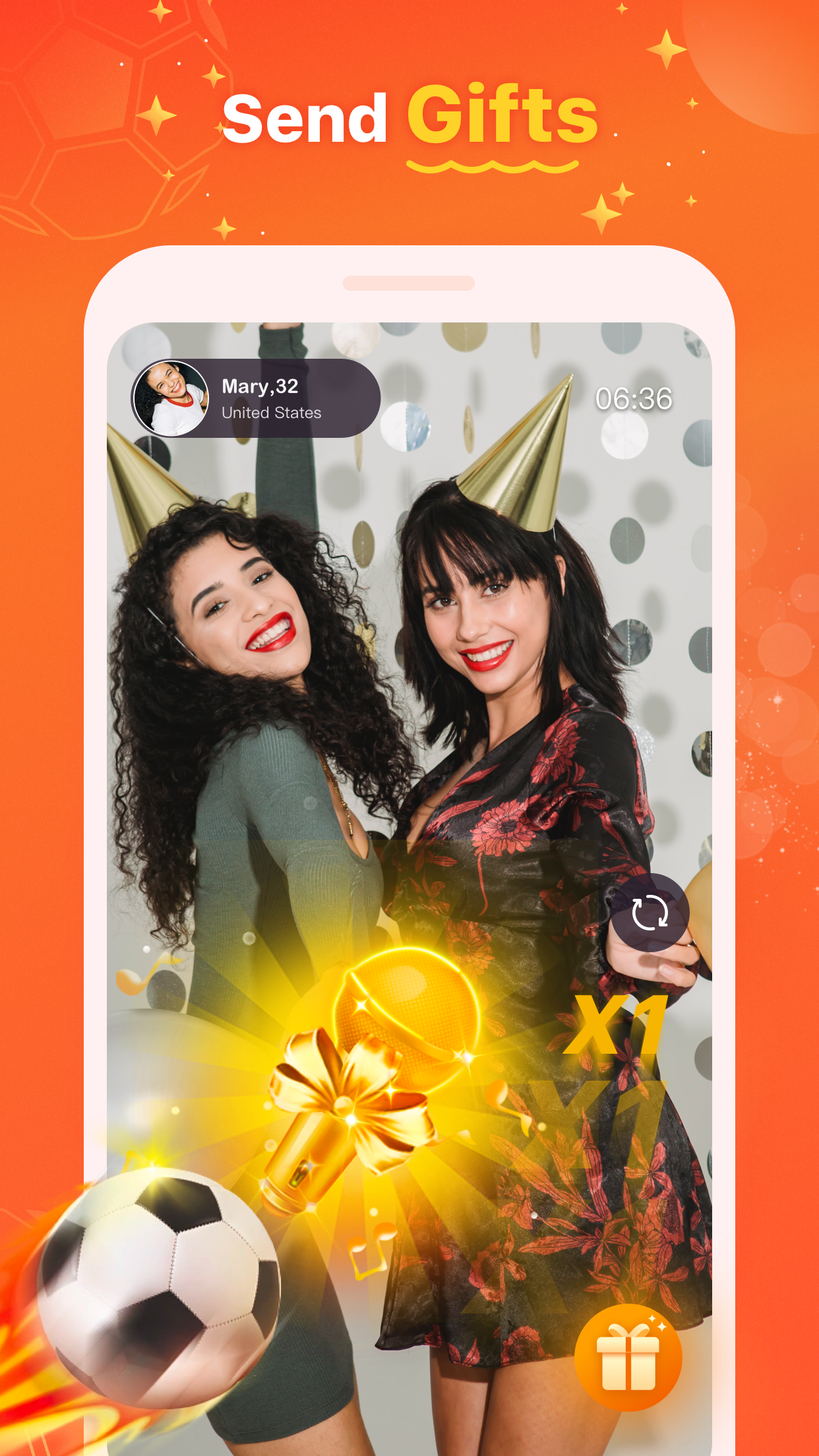 🎁 Send gifts while video chatting or messaging to show your feeling