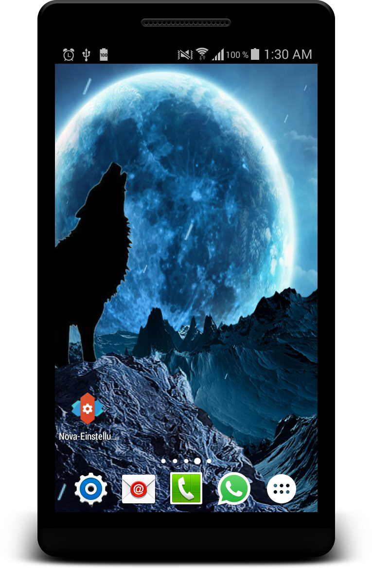 Snow Mountains in front of the blue Full Moon with Werewolf Wolf on Top of the Hill as your Android Smartphones Homescreen Background Live Wallpaper. Set the falling Snow's - Size - Size Variation - Velocity in the Settings of your Live Wallpaper. If your device do not support the moving background by swiping to the sides you can download Google or Nova Launcher which definitly supports it. Thakn you for good comments and have much fun with Blue Full Moon Werewolf Wolf Parallax Snow Live Wallpaper.