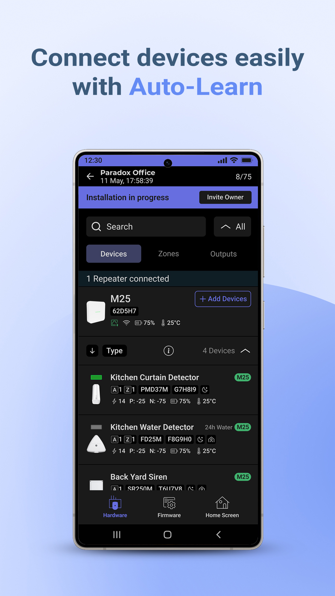 Require M25 version 1.29 and above: Unrestricted Installer access to sites without Swan services. Unrestricted user access on the local network without paid Swan services. Swan services are needed for remote operation, programming, and push. Support for WV2M (Water Valve) and WD2M (Water Detector) and water leak alerts. Replace Installer Company. Replace system Owner. Temperature Control with full monitoring, alerts, calibration, and real-time status. Bug fixes and performance improvements.