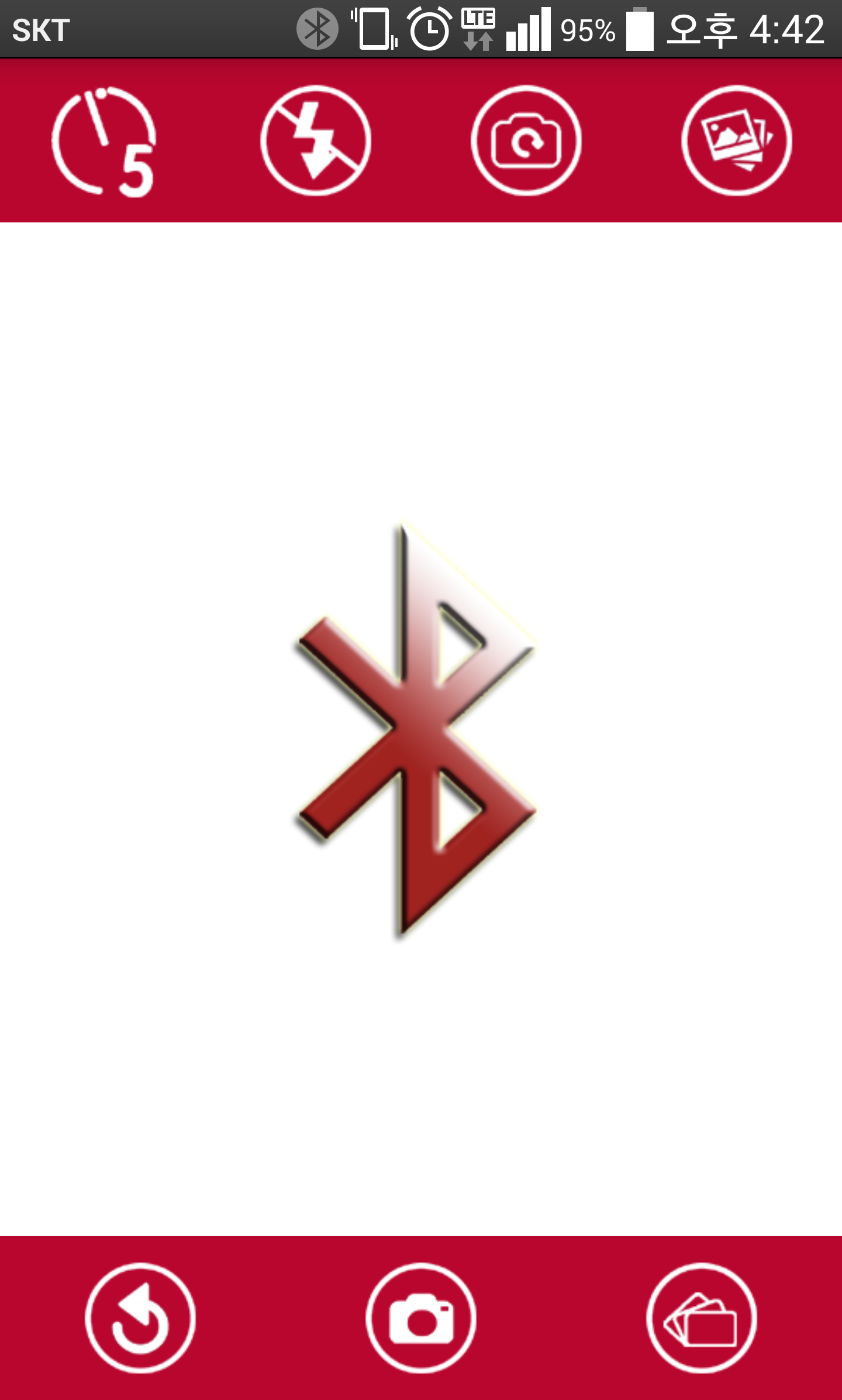 "How to use" 1. Run the app. ( 앱 실행 ) 2. Click the button on the top right Bluetooth permission request. ( 우측 상단의 Bluetooth 권한 요청 버튼 클릭 ) 3. Click "Connect" button to connect with other devices. ( "Connect" 버튼 클릭으로 다른 기기와 연결 ) 4. Select a remote controller or a camera. ( 리모트 컨트롤러 또는 카메라 선택 ) 5. Using the remote camera. ( 원격 카메라 사용 ) "Camera Features" 1. 5 seconds timer 2. Flash on/off when the rear camera 3. Switch FRONT/BACK 4. GALLERY 5. Re-shoots 6. Taking Pictures 7. Continuous Shooting Searches related to Bluetooth, Camera, Remote Control, Remote Shutter, 블루투스, 카메라, 블루투스 카메라, 원격 카메라, Etc. Release Date : 2015.03.29 Release Country : Republic of Korea. 1st Update : 2015.04.07 Picture size and orientation changes.
