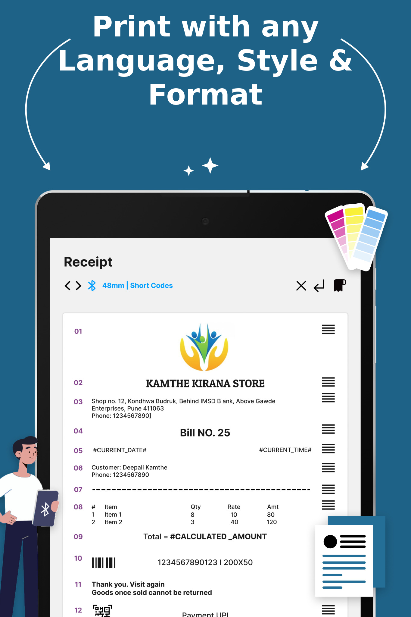 Print Custom Receipts on Bluetooth / USB Thermal Printers FULLY CUSTOMIZABLE RECEIPT MAKER & MOBILE POS THERMAL PRINTING APP Looking to create custom receipts or labels for thermal printers and print them from your phone? Try Thermer - the best-rated and most-downloaded thermal printing app to print any kind of content on your thermal printer. Why is ‘Thermer’ referred to as the best thermal printing app? 🧾Print custom receipts & labels Create a fully Customized Receipt using text, image, horizontal line, barcode, QR Code, left-right data, tabular data, files like PDF, notepad etc. 🔤Print Customer Bank Receipts using OCR Forget about POS receipt printing apps that don’t support OCR. With Thermer app, you can print a Bank Payment Receipt with the best quality. 🌍Multilingual & Multi-format Forget about other POS and shipping printer apps that can only print in English. Here you can print with any Language, style, and format. Set custom font, size & format to your text. ⌚Multi-functional Compared to other mini printer apps for android, Thermer can print current dates, times, amounts, and calculations automatically with short codes. ✅Convenient This mini thermal printer Bluetooth app allows you to easily print a receipt from your Android app or web app. But, unlike other label printer apps, our Bluetooth POS printer app allows you to print fully customizable receipts with few lines of code. 🔄Universal Our business mobile print app allows you to print on any Bluetooth / USB thermal printer supporting ESC POS commands. THERMER POS BLUETOOTH / USB THERMAL PRINT APP FEATURES: ● Bluetooth / USB thermal printer app to print from phone ● create and print receipts/labels ● supports rich text formatting, images, PDFs, barcodes, QR codes, and more ● print images from your gallery or directly from the camera ● share & print image / PDF documents & print with the best quality ● perform text OCR with highest print quality ● share & print transaction receipts ● view prints history HOW TO PRINT FROM MOBILE VIA THE THERMER USB / BLUETOOTH THERMAL PRINT APP: - Create a receipt by adding entries like text, image, lines, barcode, QR code, PDF and more. Rearrange entries if required, preview, and print instantly with our label print app. - Share a transaction receipt in image / PDF, crop & rotate if required, perform text OCR, modify text blocks if required, preview, and print with maximum accuracy - Share any content, URL, images, PDF to the app - Print a custom receipt with by putting few lines of code on your webpage. App works as a service - Print a custom receipt from your own Android app by writing few lines of code in your app. Running a business is hard. So, the last thing you want is dealing with POS Bluetooth thermal printer apps that don’t get the job done. Thermer is here to support all your mobile prints for Bluetooth / USB thermal printers with simplicity and expediency. 📲Try Thermer – the ultimate receipt creator & thermal printing app