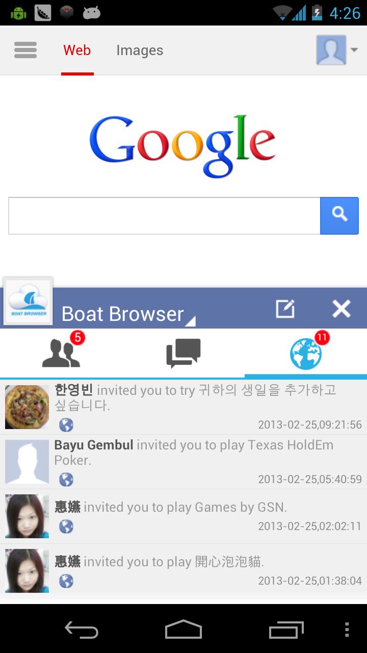 Boat FBAddon (Notification) (Package Name: com.boatbrowser.free.addon.fb) is developed by Boat Browser Addon and the latest version of Boat FBAddon (Notification) 1.4 was updated on March 11, 2013. Boat FBAddon (Notification) is in the category of Social. You can check all apps from the developer of Boat FBAddon (Notification). Currently this app is for free. This app can be downloaded on Android 2.1+ on APKFab or Google Play. All APK/XAPK files on APKFab.com are original and 100% safe with fast download.