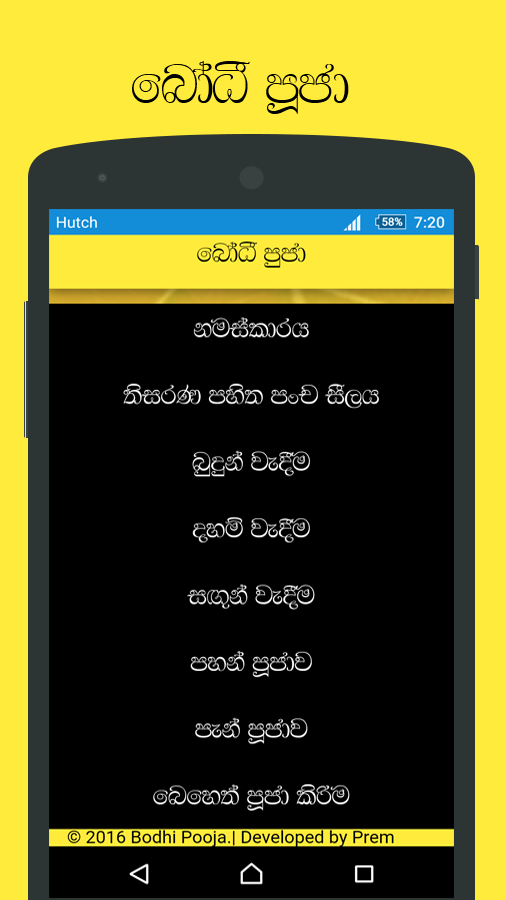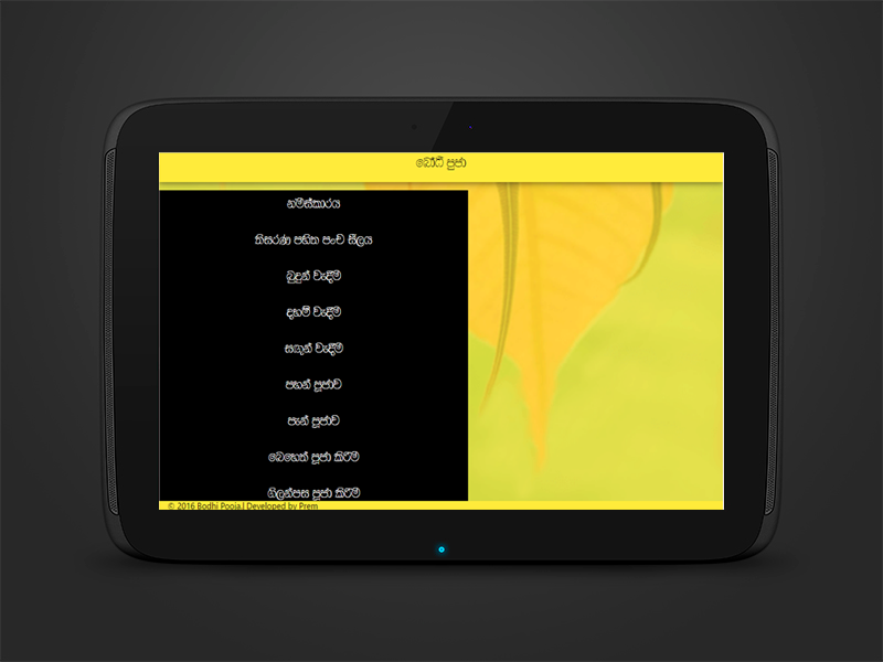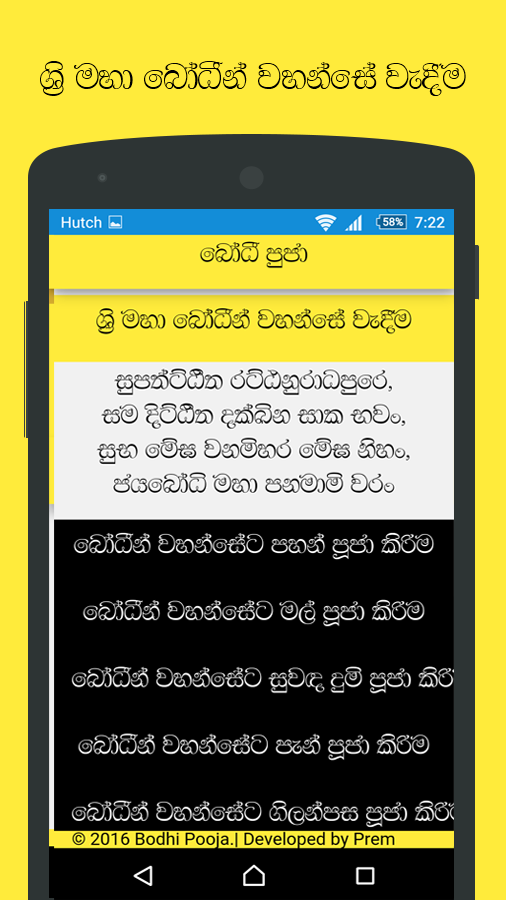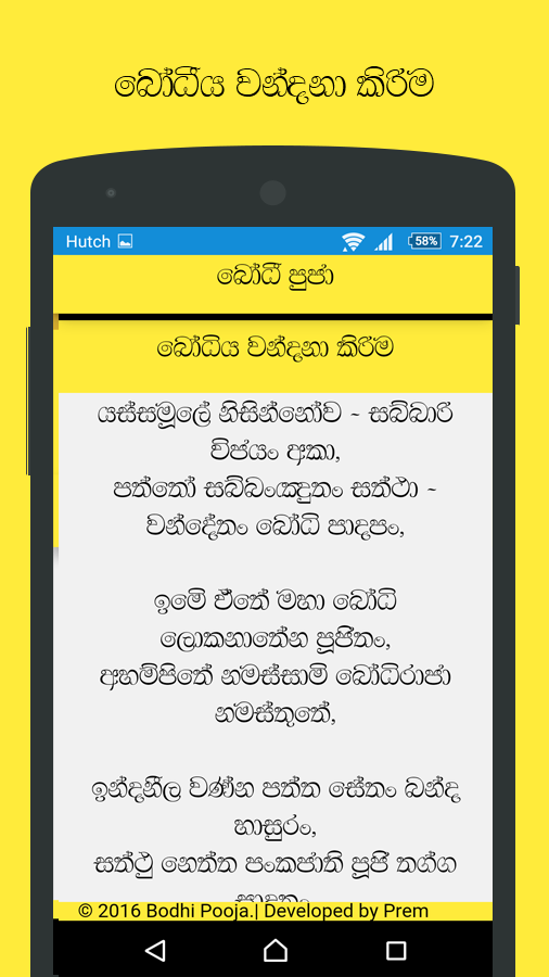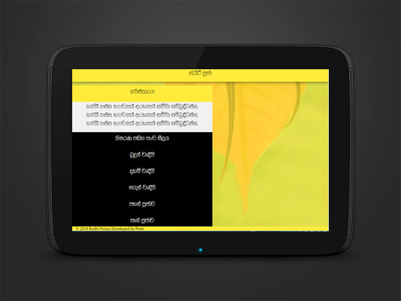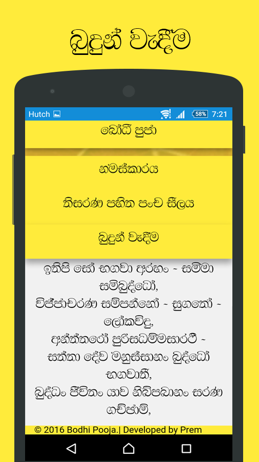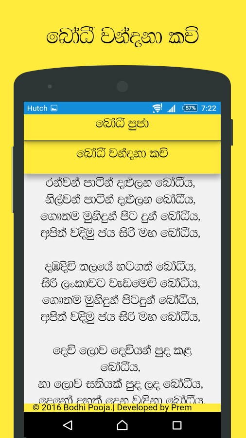 ඉතින් මෙන්න මේ වගේ අවස්ථාවකදි බෝධි පූජා ඇප් ඵක ඔබේ ජංගම දුරකථනයට ස්ථාපනය කරගැනීමෙන්, ඵම ගාථා ඉතාමත් පහසුවෙන්ම නිවැරැදි ලෙස බලාගෙන කියවන්න පුලුවන් විදිහට තමයි මේ බෝධි පූජා ඇප් ඵක නිර්මාණය කරලා තියෙන්නේ.