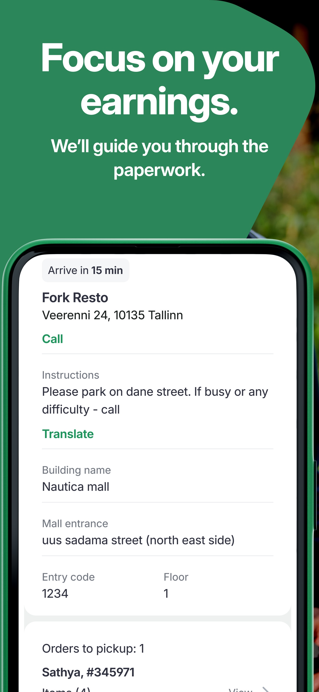 • Sign up to drive inside the Bolt Courier app or at https://bolt.eu/food/courier;