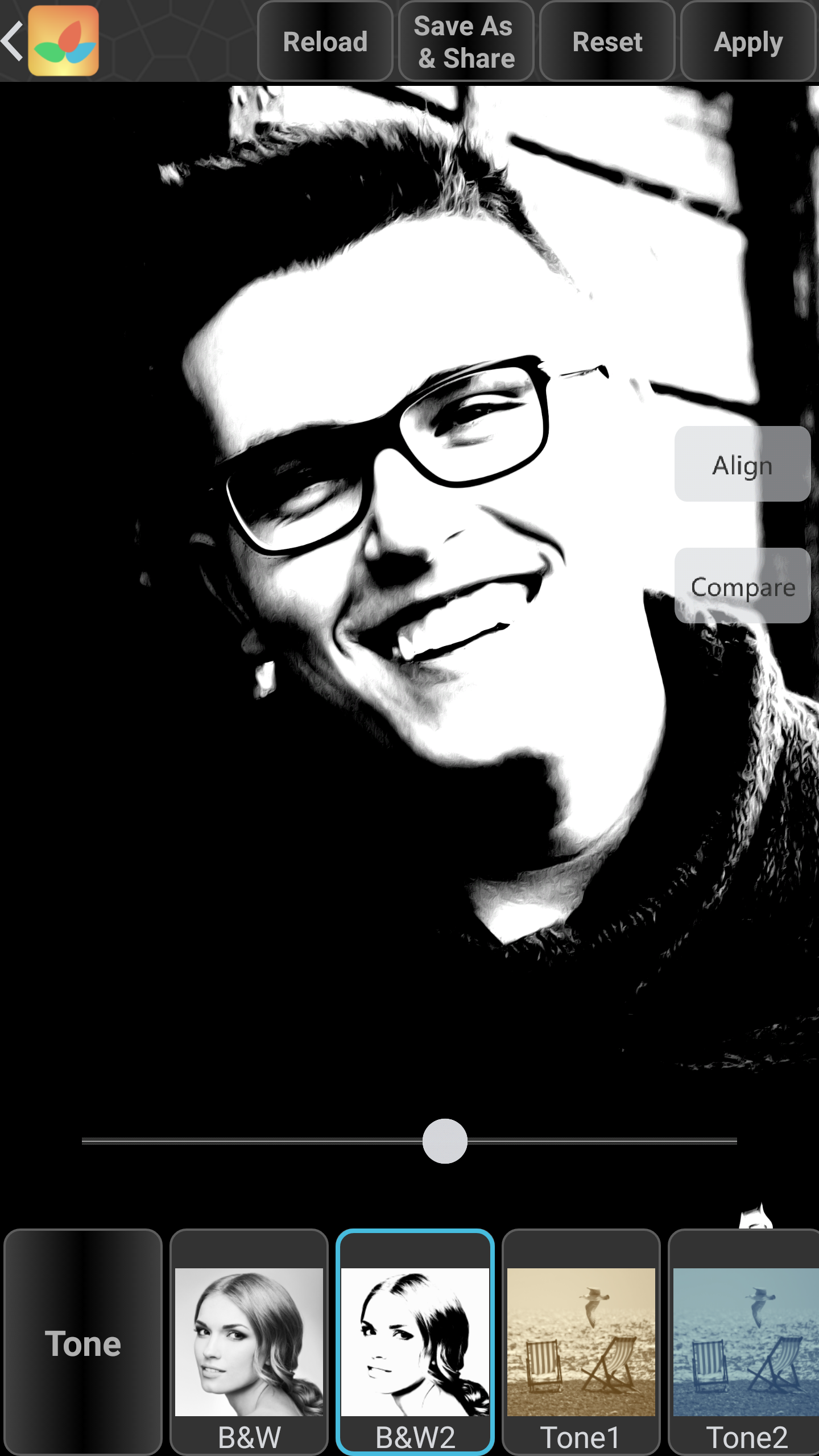 Black and White HDR filter and 16 different tone filters. Specially optimized for human face. Brilliant old photo effects. Tone filters change the vibe of photo and make your photos moody, sentimental, and nostalgic