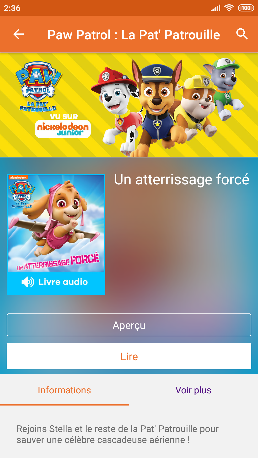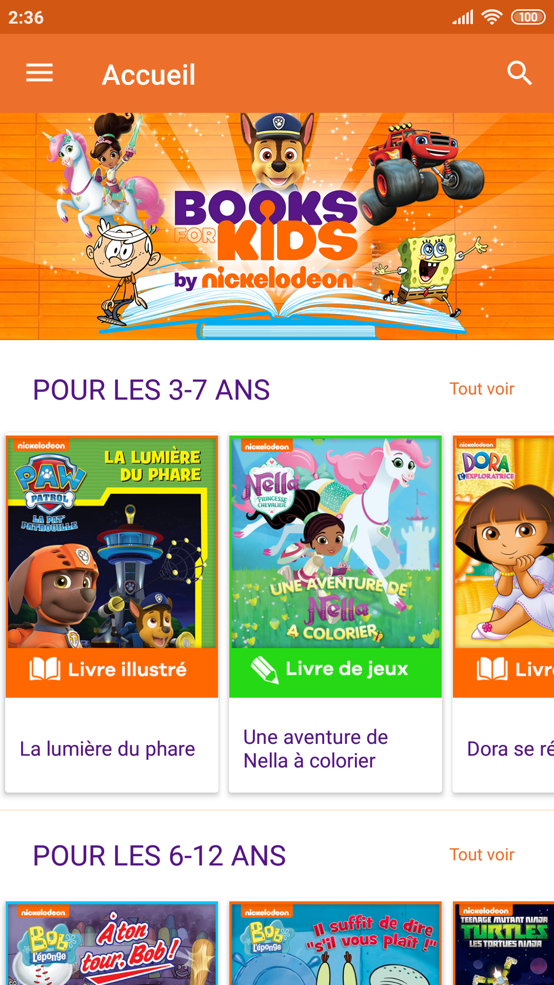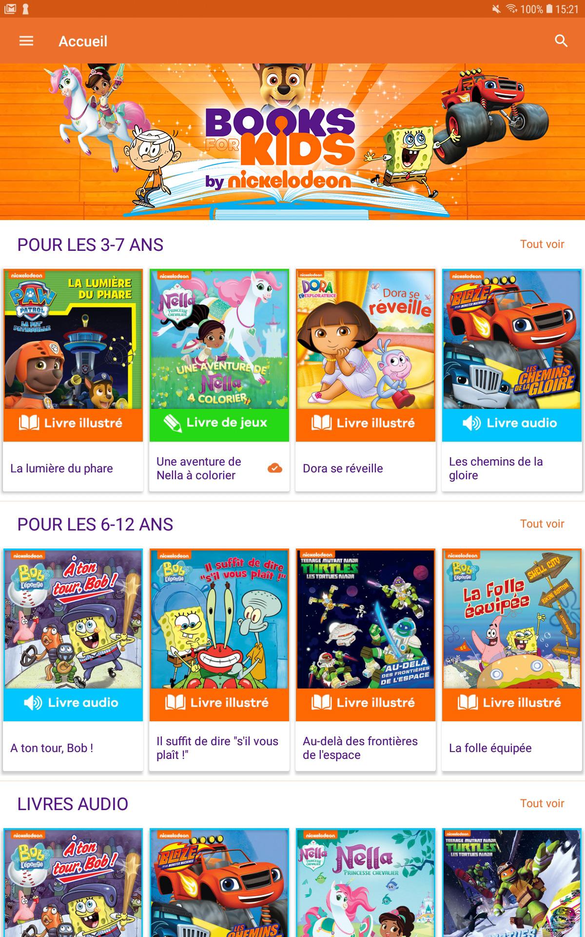 Avec l’application BOOKS FOR KIDS by NICKELODEON, retrouvez tous les héros des chaînes NICKELODEON pour la première fois dans une grande bibliothèque des livres accessibles en téléchargement directement sur smartphones et tablettes avec : des livres illustrés, des livres audio, des romans, des livres de jeux et même des magazines. Le visionnage des livres débute dès que le téléchargement commence. Une fois téléchargés, les livres peuvent être consultés quand vous voulez et où vous voulez depuis la rubrique « Mes livres », sans connexion internet et/ou réseau mobile. La lecture de vos livres audio se poursuit même si vous verrouillez votre téléphone, ou en multitâches si vous utilisez une autre application. Enrichie d’une dizaine de nouveaux livres tous les mois, retrouvez dans cette bibliothèque numérique tous les héros de NICKELODEON JUNIOR, la chaîne ludo-éducative pour les 3-7 ans comme Dora l’exploratrice, Nella Princesse Chevalier, Paw Patrol : La Pat’ Patrouille, Umizoomi, Shimmer et Shine, Bubulle Guppies, Blaze et les Monster Machines… Et tous les héros de NICKELODEON, la chaîne la plus drôle pour les 8-12 ans comme Bob l’éponge, Les Tortues Ninja, Avatar le dernier maître de l’air, Bienvenue chez les Loud… Les abonnements proposés dans l’application donnent accès à tous les contenus pour une période de 1 mois à 6.99 €, une période de 3 mois à 15.99 € ou une période de 6 mois à 29.99 €. Le paiement de l’abonnement sera facturé sur le compte PlayStore de l’utilisateur au moment de la confirmation de l’achat. L’abonnement est renouvelé automatiquement au tarif indiqué à moins que l’utilisateur ne désactive la fonction de renouvellement automatique 24h avant la fin de la période en cours. Le paiement du renouvellement sera facturé sur le compte PlayStore de l’utilisateur dans les 24h précédant la fin de la période en cours. L’utilisateur peut gérer ses abonnements et peut désactiver la fonction de renouvellement automatique en se rendant sur la page de gestion du compte utilisateur après achat. Aucune annulation ou remboursement de l’abonnement en cours n’est possible. Nous invitons les utilisateurs de l’application à se renseigner sur l’offre la mieux adaptée à leurs usages auprès de leur opérateur pour éviter ainsi toute facturation excessive