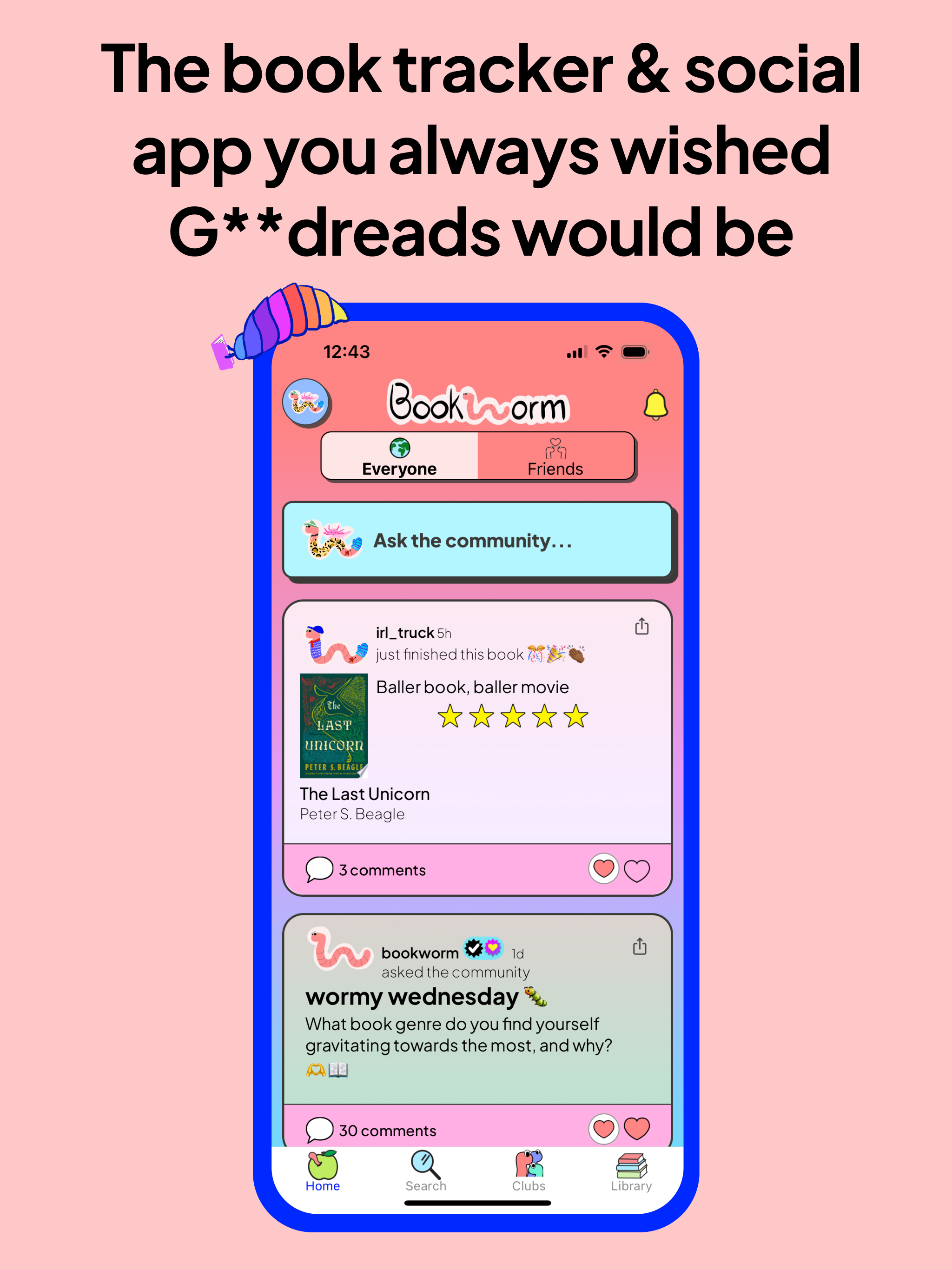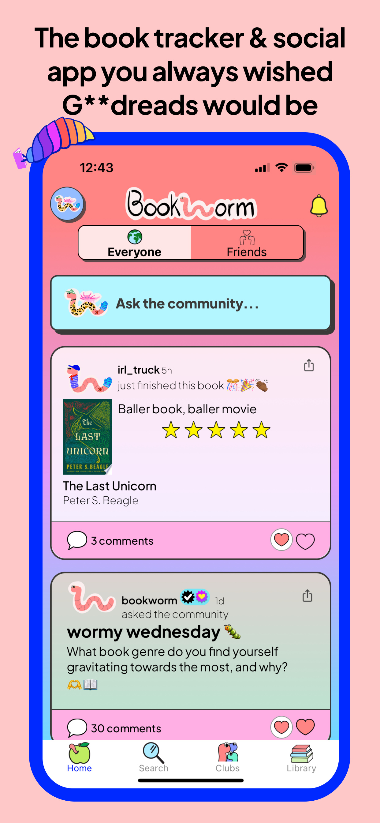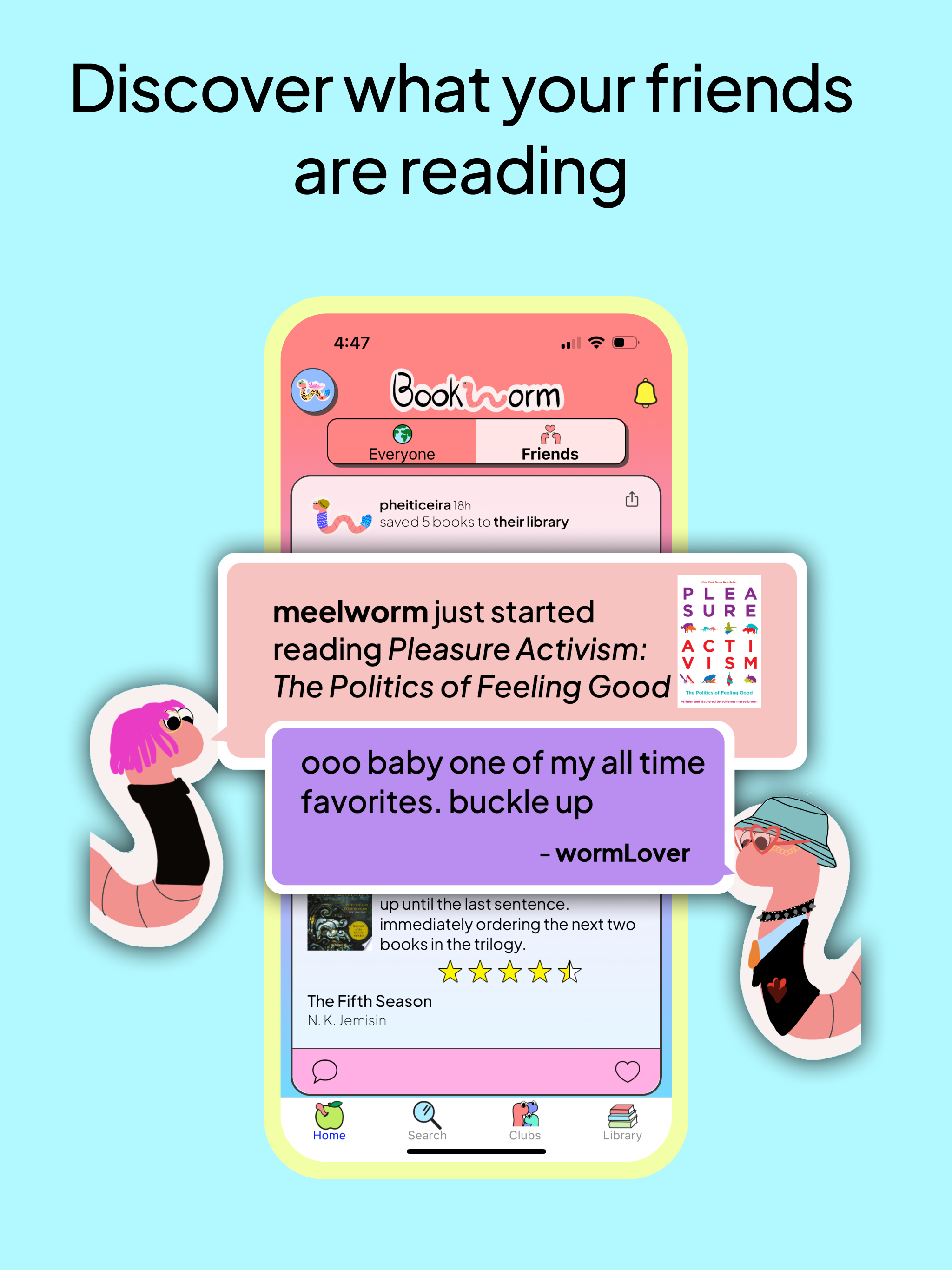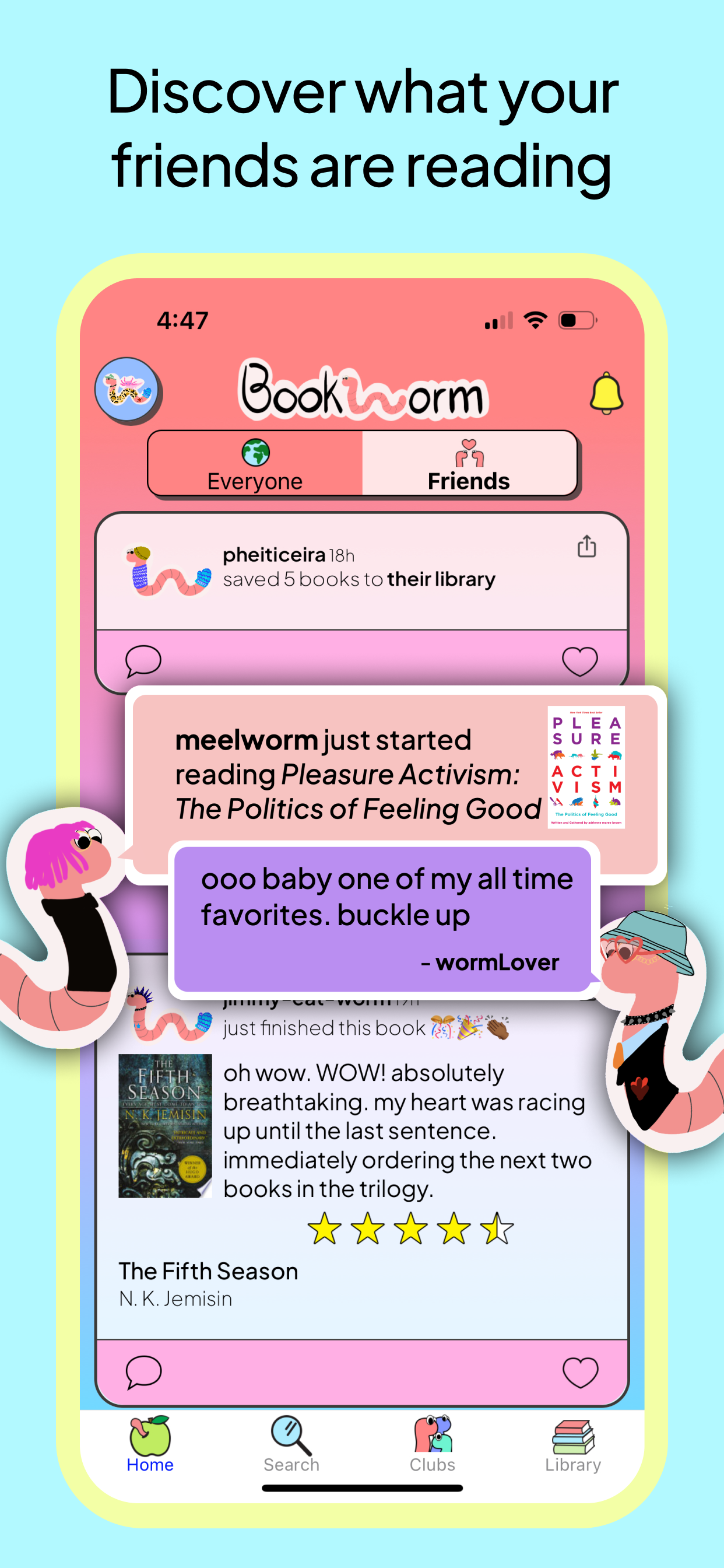 Download Bookworm Reads, create your wormy, and join the community!