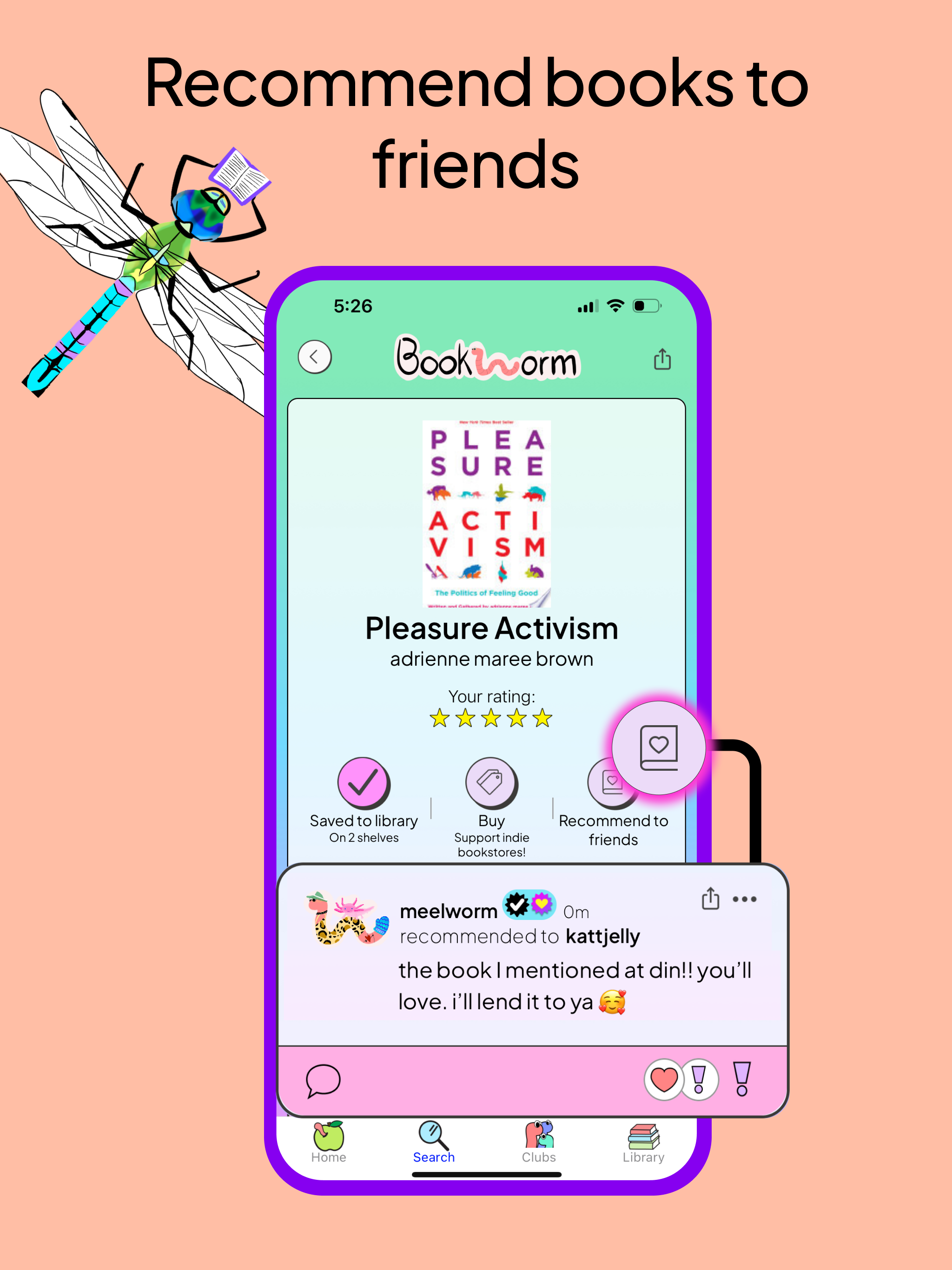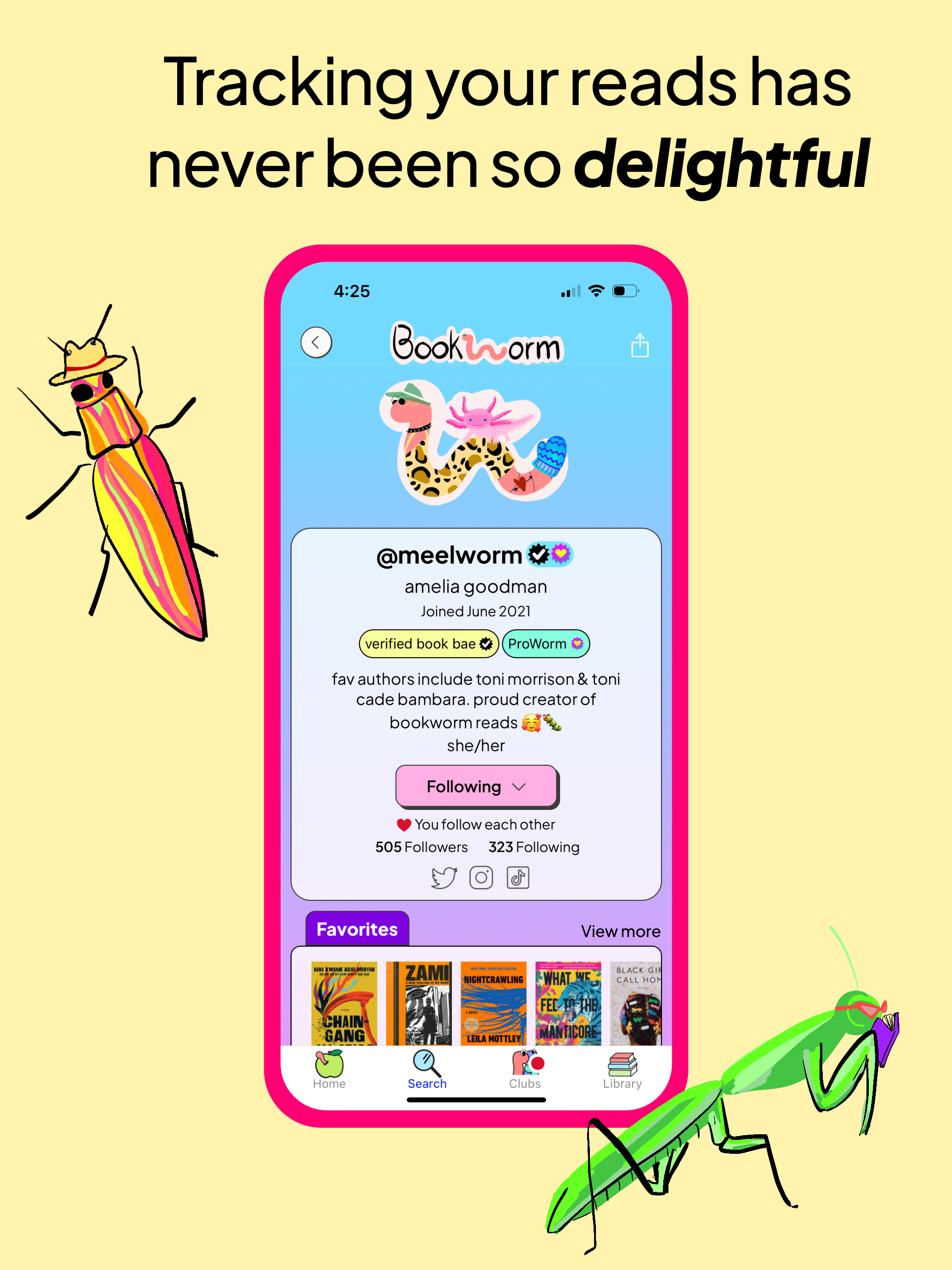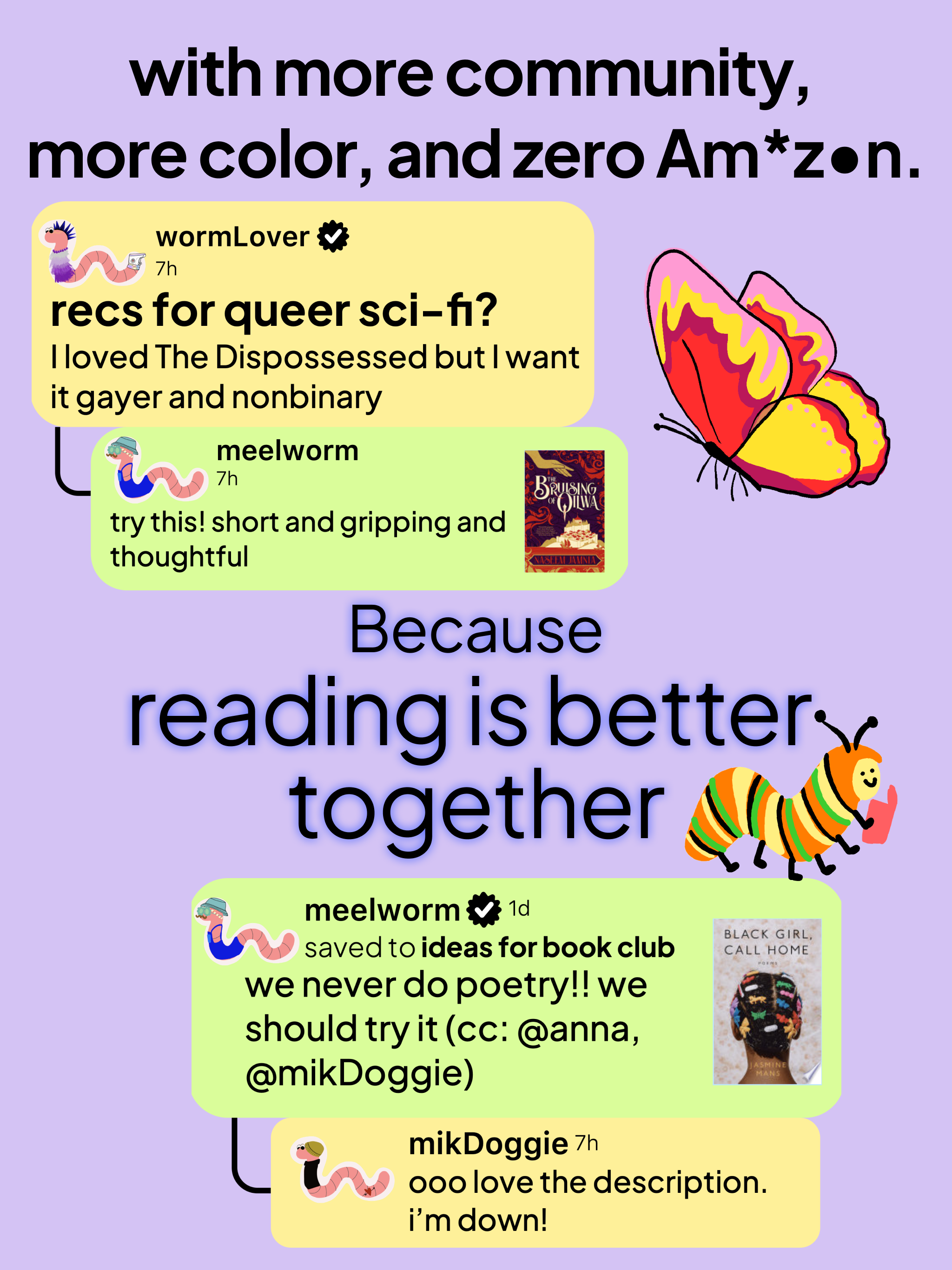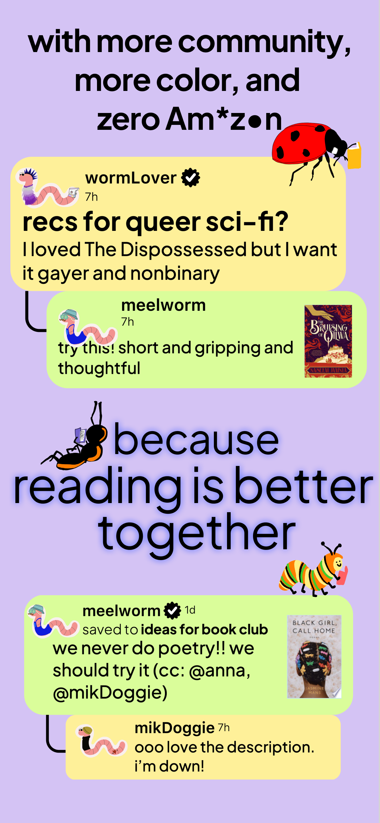 Download Bookworm Reads, create your wormy, and join the community!