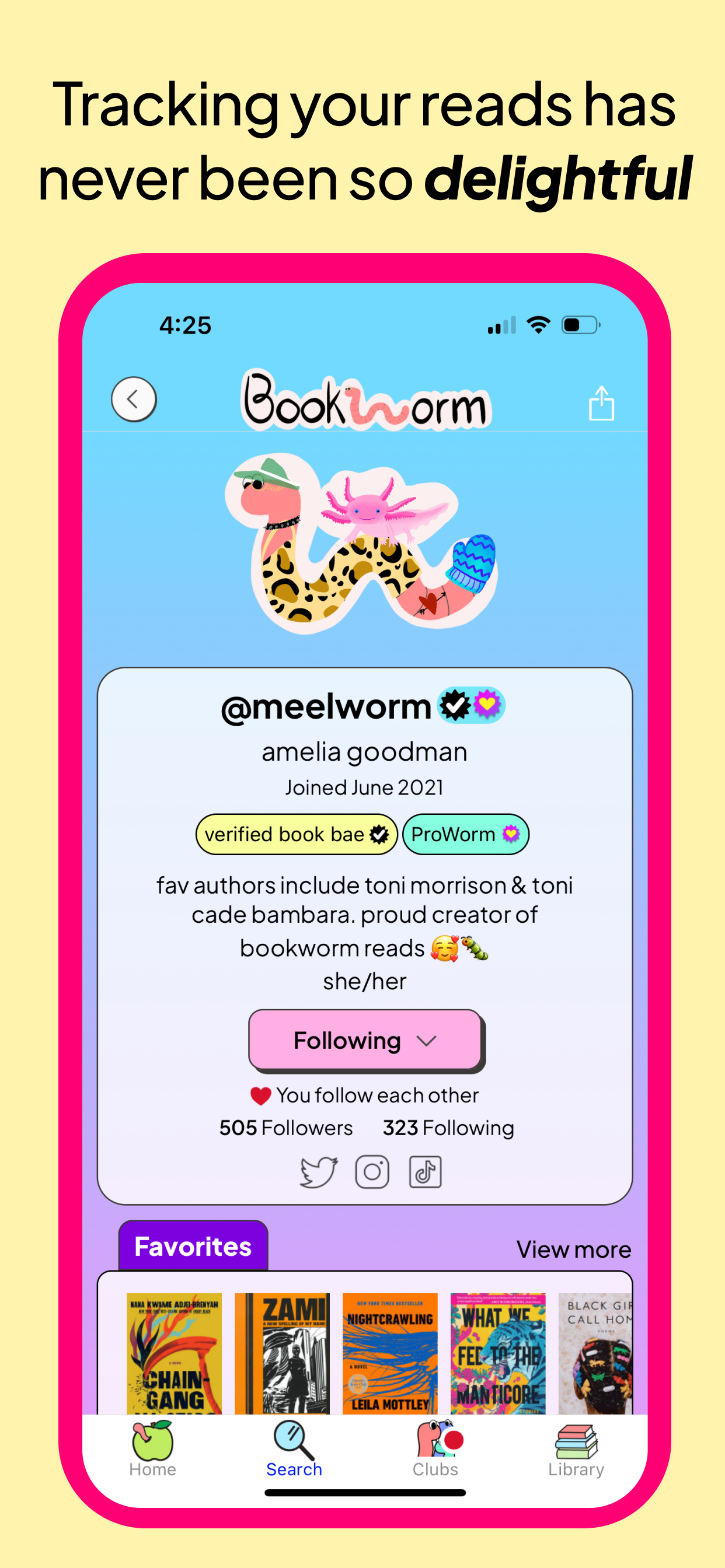 Bookworm Reads is a book tracker & joyful community app. On Bookworm, you can track your books, see what your friends are reading, rate, review, and discuss books, create and join book clubs, and be a part of a vibrant digital community of readers.