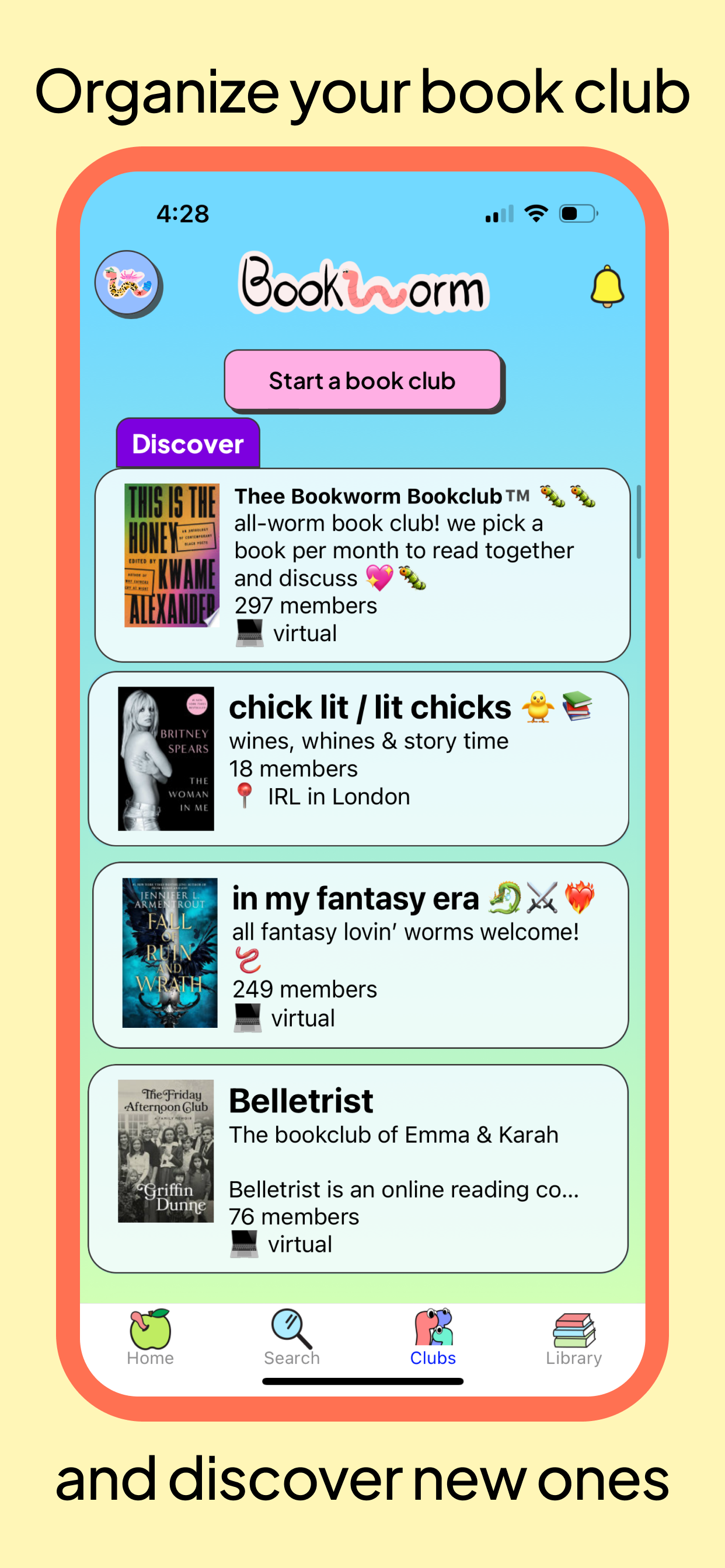 • discover new clubs: join one of the many public book clubs to find new reading buddies