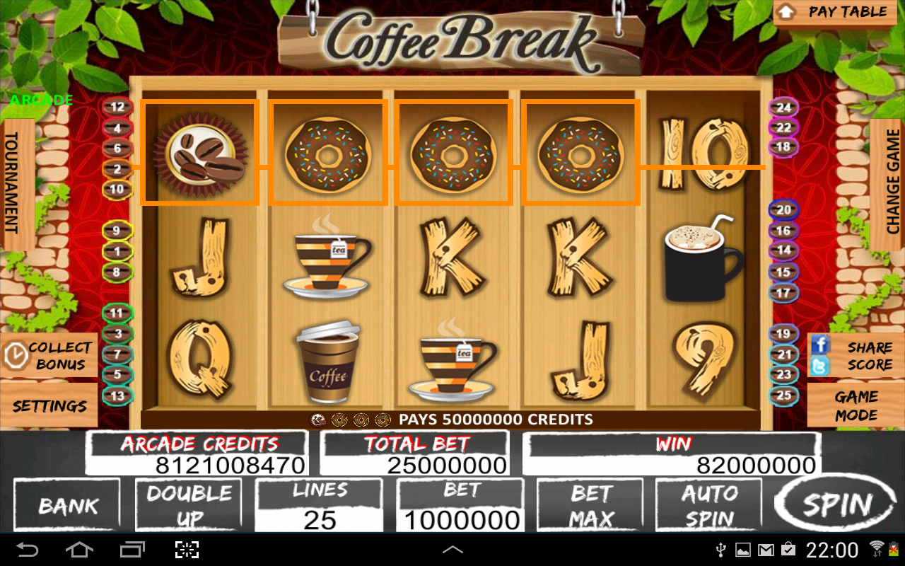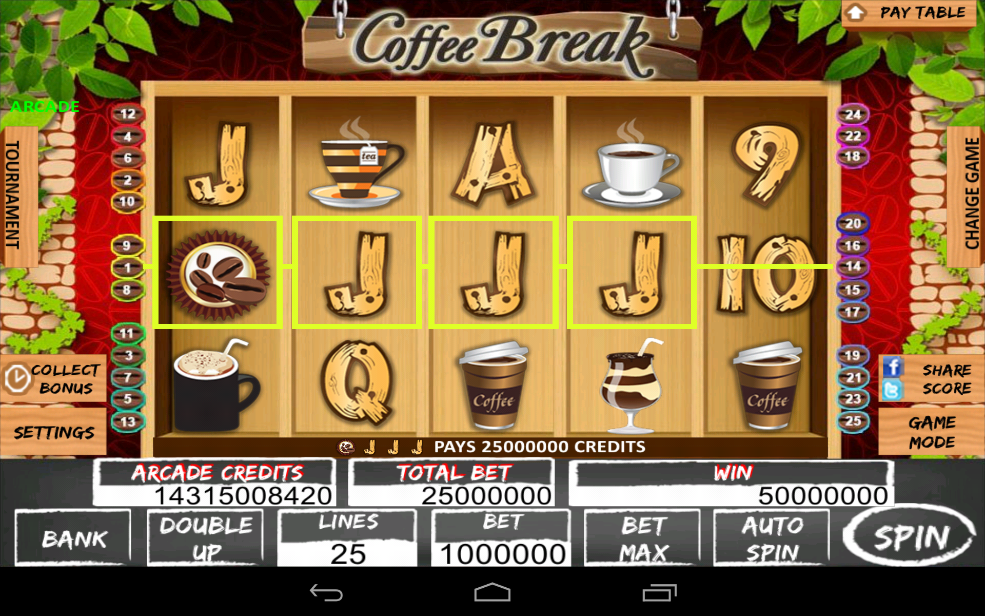 • Auto Spin let the slot machine play for you while you watch the winnings pour in