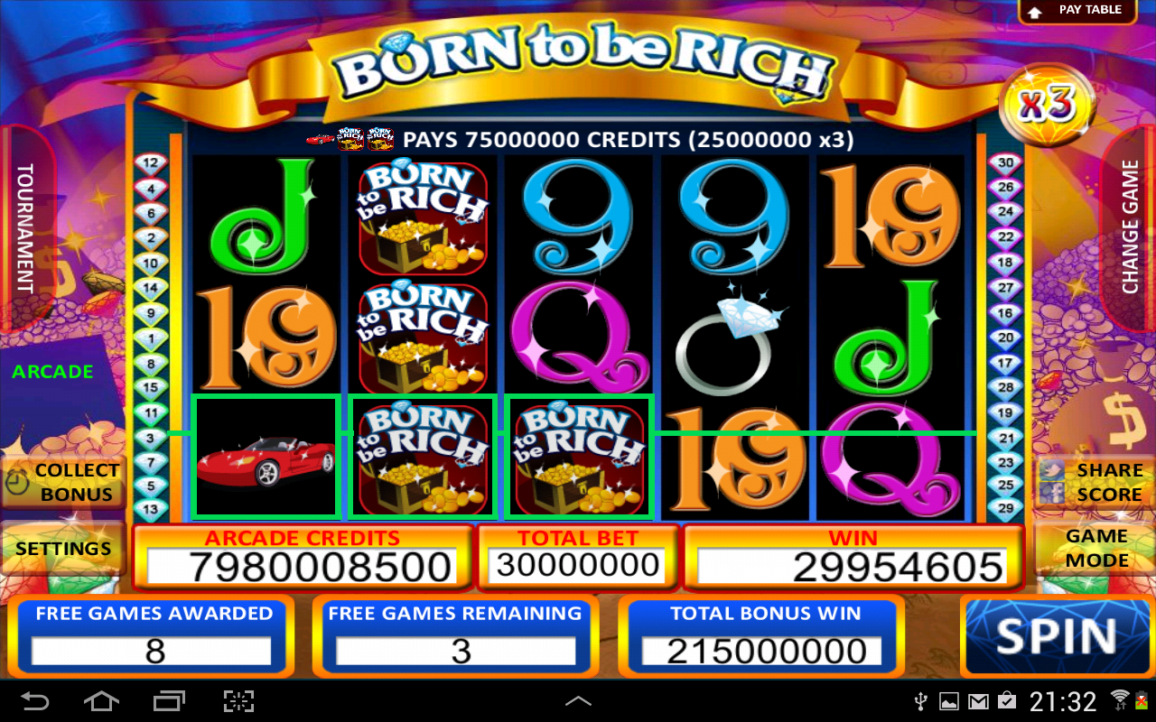 Experience the most realistic and exciting slot machines on Google Play for free. Born to be Rich Slot Machine has finally brought all its casino authentic slot goodness to Android! With high quality graphics, a large variety of games, and pulse pounding game play, you'll have fun playing forever with free coins.