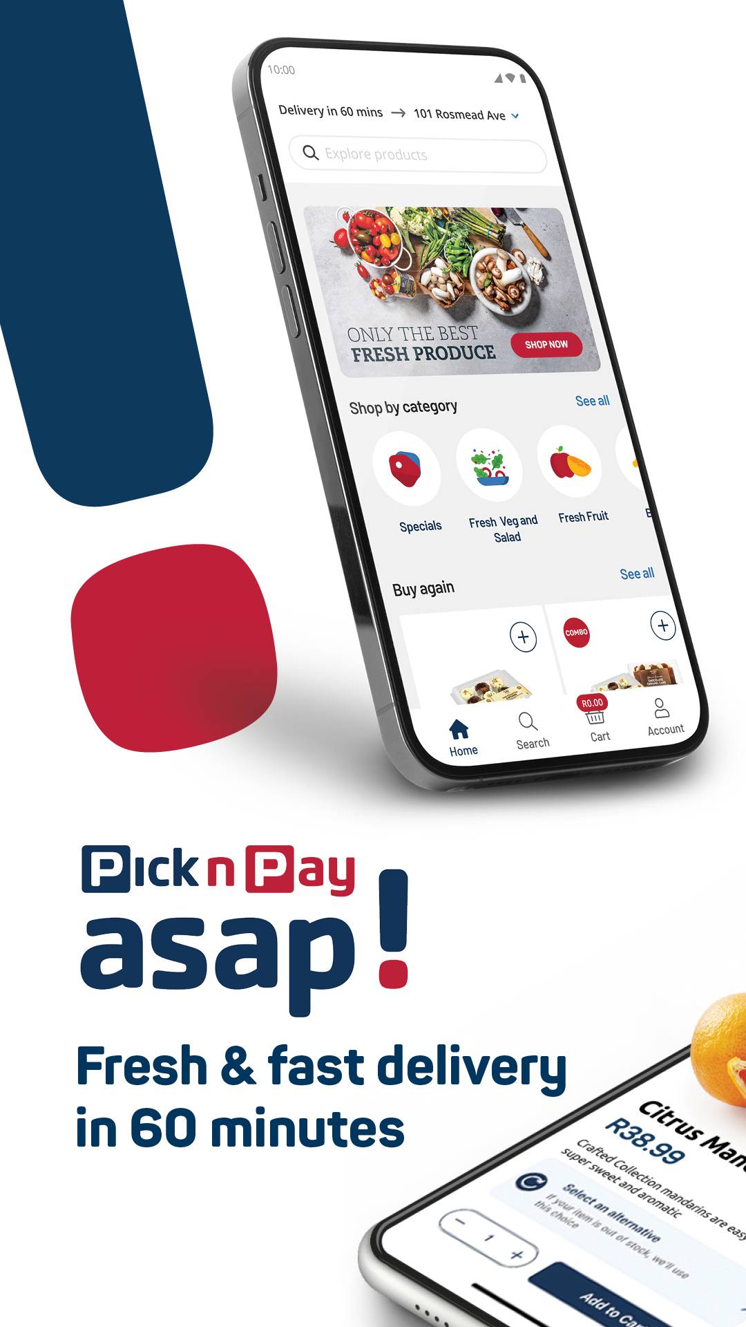 Our freshest groceries, delivered fast, easy. Just tap tap asap! Pick n Pay's official shopping app for grocery delivery & more. With over 25 000 products available, fast, fresh groceries are just a tap away! With Pick n Pay asap!, you can enjoy amazing specials, exclusive deals, in-store pricing on thousands of products, Smart Shopper rewards, and fast delivery right to your doorstep. Whether you’ve run out of milk, decided to eat at home instead of going out or simply want to do your weekly shopping from the comfort of the couch, we make it easy to get what you need, with super-fast delivery in just 60 minutes, smart Ai search and precision tracking. We deliver to towns and cities across South Africa, with orders sent from your nearest store.
