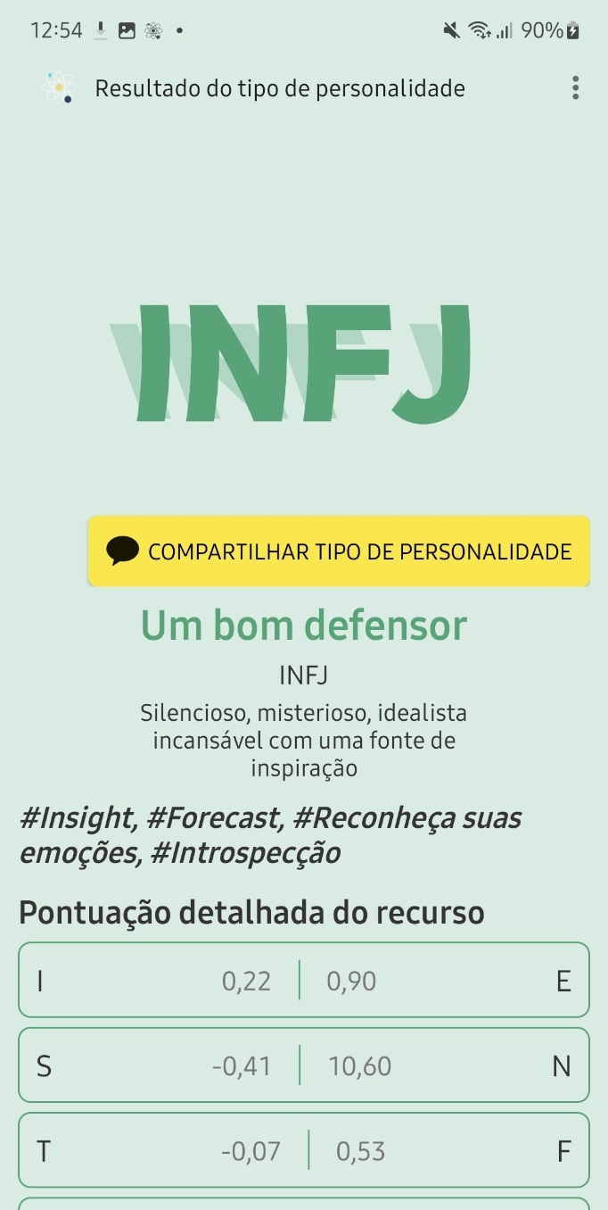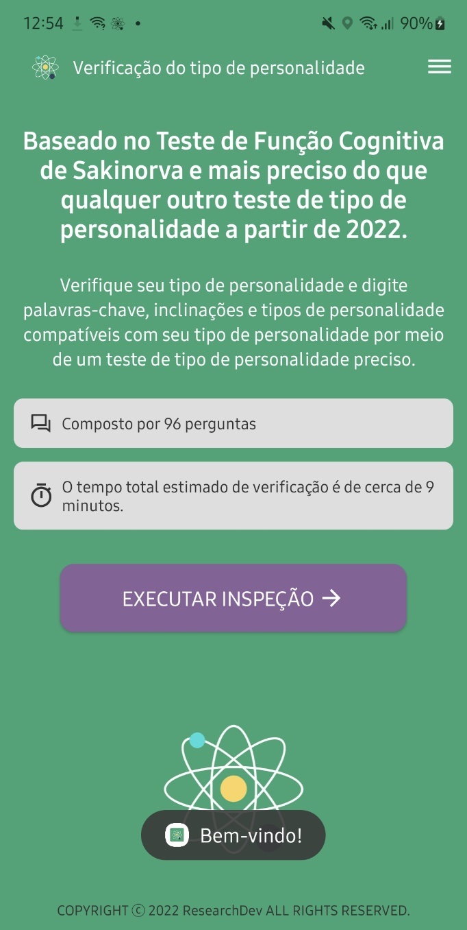 - Teste de função cognitiva Sakinorva, mais preciso do que qualquer teste MBTI a partir de 2023. - Confira o teste de tipo de personalidade mais preciso a partir de 2023 para descobrir qual tipo de MBTI é melhor para seu tipo de MBTI, palavras-chave, tendências e compatibilidade. - Estou usando ilustrações da Redev (16 tipos de personalidade). - Eneagramas adicionais podem ser encontrados no site original de Sarkinova. - Você pode compartilhar seus resultados MBTI com seus amigos KakaoTalk. - Testes de tipo de personalidade adicionais podem ser realizados. - Você pode obter dinheiro clicando no botão Cash (Avati) e assistindo a vários anúncios, e pode trocar e comprar itens por dinheiro real. - Você pode verificar o tipo MBTI e 8 palavras-chave de tendências de forma simples e precisa sem fazer login.