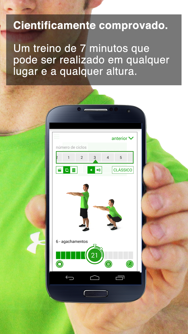 O "treino de 7 minutos" é um programa de treino sustentado por uma investigação e que está a ser um sucesso internacional! Publicado no ACSM, jornal científico de referência e, mais tarde, popularizado pelo NYT, o "treino de 7 minutos" é simples mas eficaz. Os investigadores selecionaram 12 exercícios que devem ser realizados durante 30 segundos com 10 minutos de intervalo. Este treino de alta intensidade, com pouco descanso, aumenta o seu metabolismo diário e equivale a um treino de uma hora, sendo apenas necessário pouco mais do que 7 minutos. O melhor nisto tudo? Os exercícios são muito fáceis de realizar, não requerem equipamentos, o que permite que os faça em qualquer lugar! ACABARAM-SE AS DESCULPAS. Esta aplicação propõe-lhe um treino comprovado e orienta-o ao longo de todo o processo. Pode também consultar os seus resultados e divertir-se ao desbloquear recompensas à medida que treina. A aplicação contém as seguintes funções: - um design impressionante - instrutores e instrutoras que o orientam por vídeo, áudio, imagem e texto - todo o conteúdo está INCLUÍDO (sem custos extras e sem necessidade de estar ligado à Internet) - monitorize o seu peso - monitorize as suas atividades com a ajuda do calendário - treine e desbloqueie vários feitos - somos especialistas na área do fitness e programadores de aplicações dedicados. O nosso objetivo é oferecer produtos da mais alta qualidade. - se tiver alguma sugestão, contacte-nos. As nossas aplicações são atualizadas regularmente e sem custos.