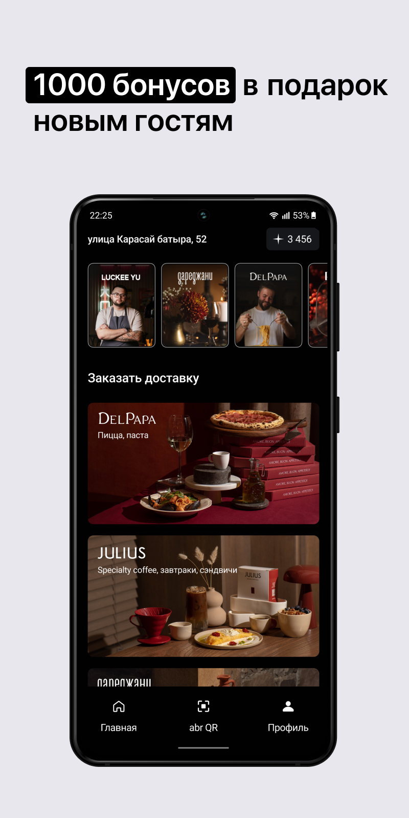 Активируете промокод во вкладке профиля и получайте бонусы, чтобы использовать их в доставке и при оплате QR в ресторанах. Также во вкладке с ресторанами можно найти бронирование и сделать несколько броней в выбранном ресторане. Профильде промокодты енгізіңіз — біз дәл сол мезетте сізге бонус жібереміз. Сол бонусты тапсырысты жеткізуге және QR-мен мейрамханада төлемге жұмсаса болады. Сонымен қатар, abr мейрамханалары бөлімді жақсарттық. Ендігі бір мейрамханада бірнеше брондау жасаса болады.