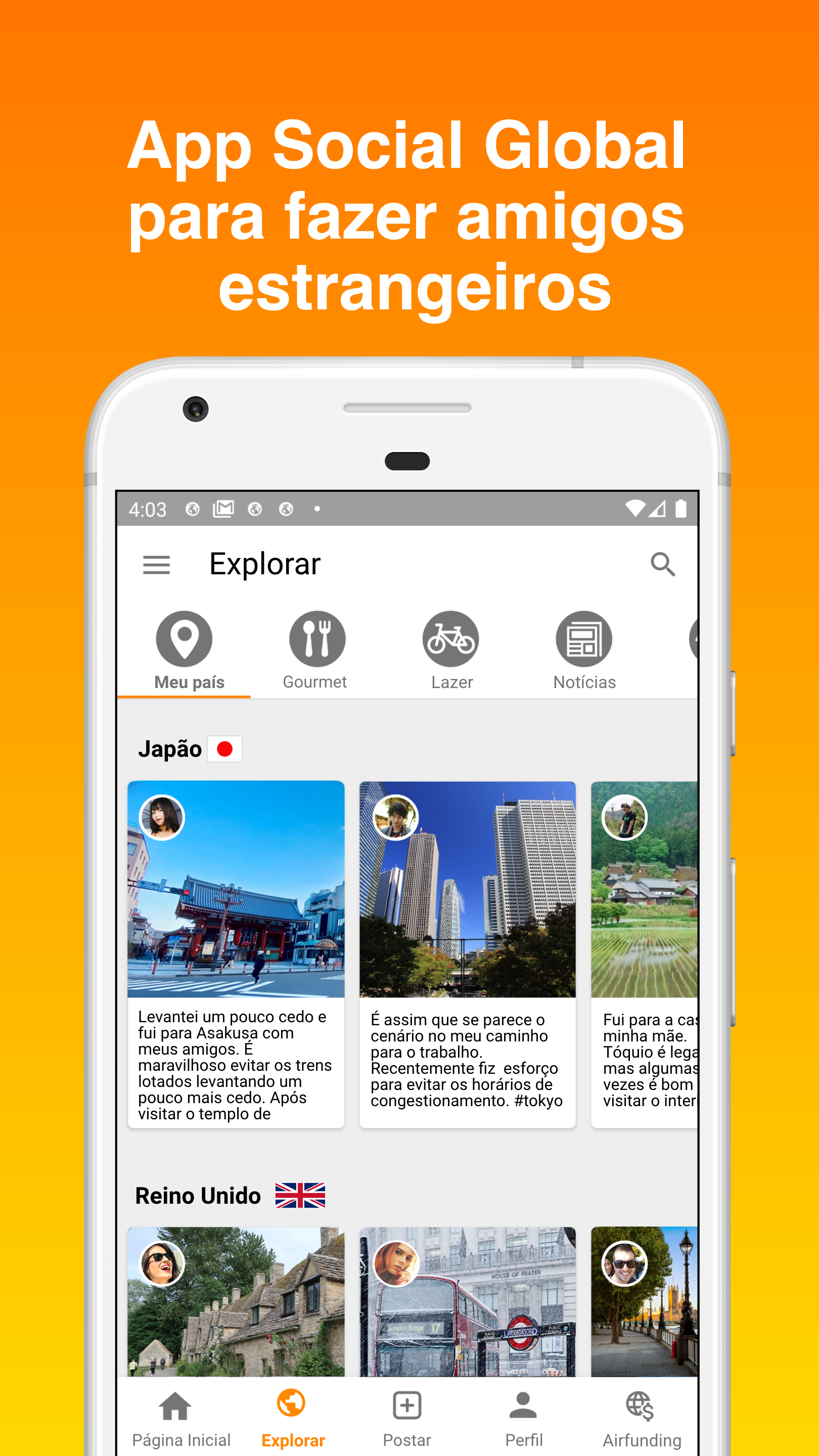• Conheça novos amigos internacionais em todo o mundo: