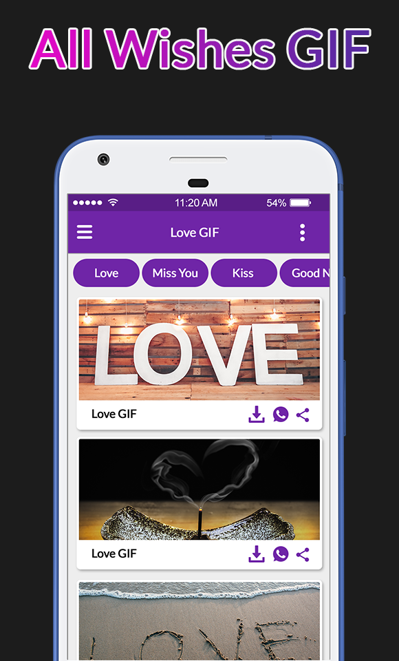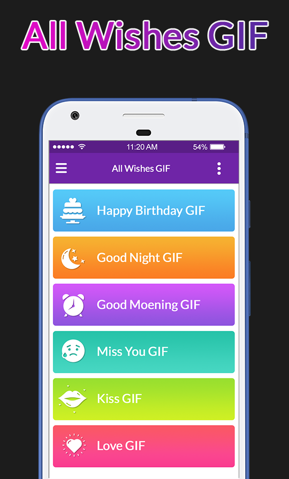 This app brings you the best collection of GIF wishes for WhatsApp for 2018. Wish festivals & birthdays with these gif images. These new GIF collections can be shared on WhatsApp and other social sites like Facebook. You can also download the latest trendy GIF’s. All Collection days celebration with Gif Animated images that available in wishes and greetings festival. FEATURES ★ GIF Collection for all festivals 🎉 Best collection of gif images & greetings for all festivals & occasions. ★ Daily gif Images 🚺 Wish your friends & family with these daily gif animated wishes. Like - Good Morning gifs, good night gifs, birthday gifs and much more. ★ GIF App - Download gifs 🔥 Easy download all wishes gif which includes morning gifs, emoji gifs, kisses gifs, birthday gifs, funny gifs and much more. ★ Easy to use 📲 Very easy to use interface just select gif category from gif collection and browse through our awesome gifs. → GIF Categories: Good Morning GIFs Good morning animated GIFs for WhatsApp. Get the top good morning gif images to show your good morning love. Get latest morning wishes, gm cartoon gifs, good morning funny gifs, weird gifs, good morning love gifs and many more beautiful good morning animations. Good Night GIFs Good night animated GIFs for WhatsApp. Get the top good night gif images to show your good night love. Get latest good night wishes, gn cartoon gifs, good night funny gifs, weird gifs, good night love gifs and many more beautiful good night animations. Birthday GIFs Happy Birthday animated GIFs for 2018. Birthday GIF images to show your love. Get the top birthday animated gifs for free. These birthday wishes GIF images can be sent as an WhatsApp gif image or to any other social media like Facebook & Instagram. Emoji GIFs Emoji GIF for WhatsApp for 2018. Use top Emoji GIF images to show your emotions. Get funny emoji gifs, emoji animation free, happy emotional gif, gifs to express emotions, 3d animated emoticons and many more animated emoji gif. Kisses GIFs Kiss GIFs for WhatsApp for 2018.Use top kissing GIF images to show your love. Get latest kiss gifs, goodnight kiss gif, making out gif, romantic kiss gif, kissing gif cartoon and many lovelier romantic kiss animations. Funny GIFs Funny Animated GIFs for WhatsApp for 2018. Funny GIF images to laugh, smile and have fun. Get latest cool gifs, cute gifs, weird gifs, silly gifs, funny dance gifs, hilarious gifs, fun gifs, comedy gifs and many funnier & comedy gifs. If you have any questions or suggestions for this app thens, please feel free to contact us via email. Rate us and give your valuable comment for this awesome App, We are working hard every day to make the app better. Thanks for your support!