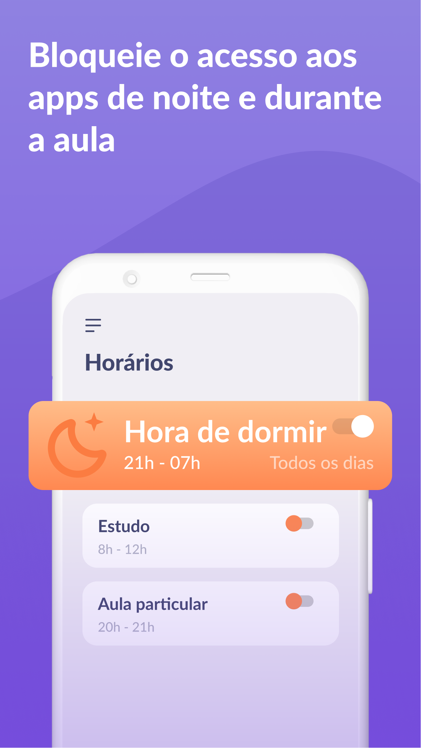 Horário - defina horários para o horário escolar e descanso à noite: jogos, redes sociais e aplicativos de entretenimento não estarão disponíveis durante o horário especificado