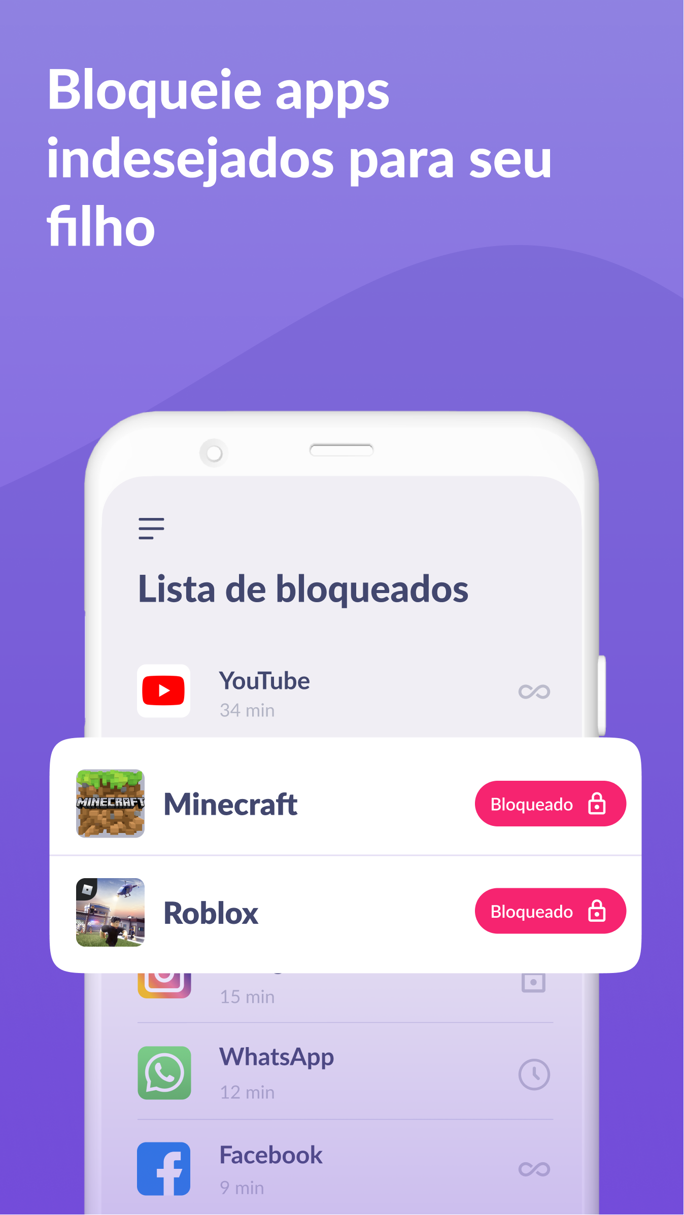 Lista de aplicativos - selecione os aplicativos que deseja limitar ou bloquear completamente