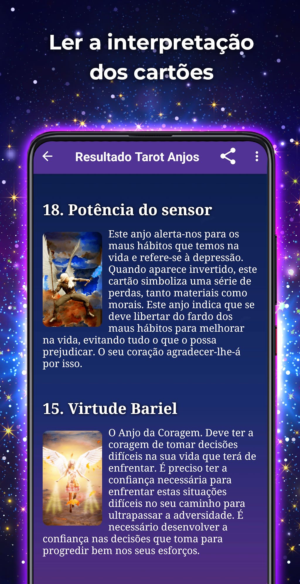 Carta de Tarô: Obtenha uma carta de tarô de anjos e descubra como vai ser o seu dia em geral. Além disso, pode oferecer-lhe protecção divina e angélica.