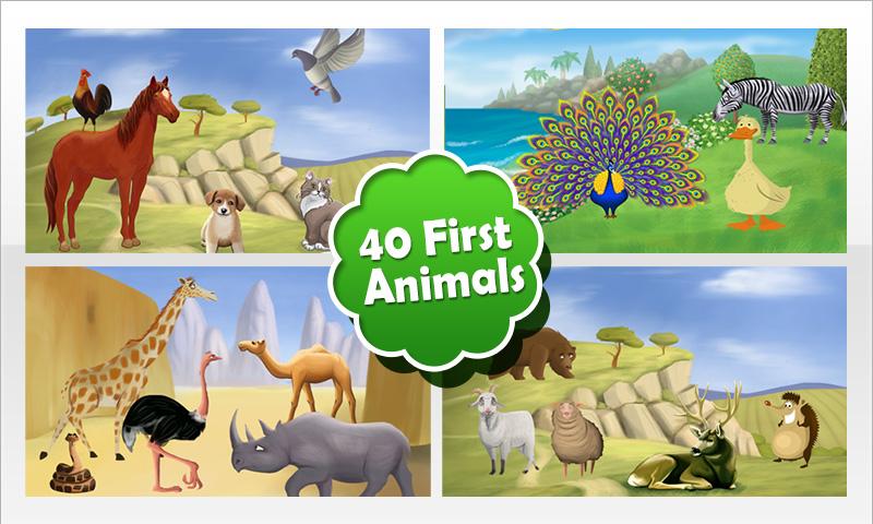 * Learn animal names and sounds from the jungle and farm. Don’t forget the pets too