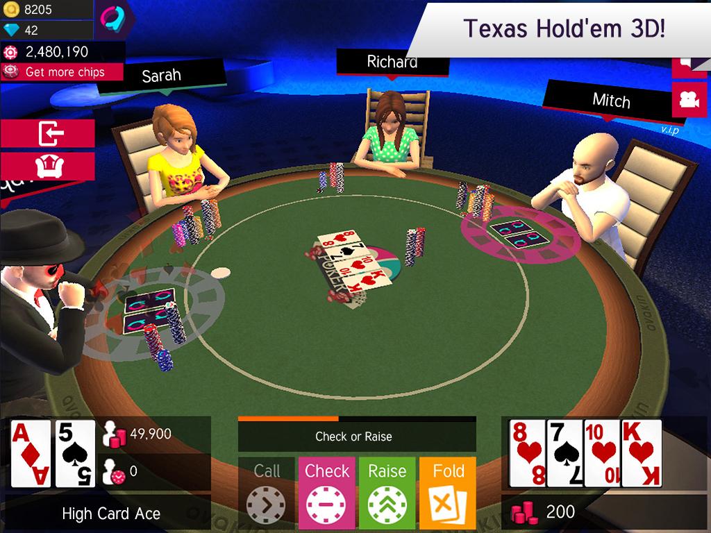 Ás do baralho ou peixe novo? Avakin Poker atende a jogadores de todas as habilidades, então puxe uma cadeira e vá com tudo no entusiasmo do Texas Hold'em absolutamente GRÁTIS. Junte-se a jogadores de todo o mundo para jogos de altos ganhos, jogue contra amigos ou mergulhe em um jogo rápido contra estranhos. Seu amigo está preso atrás de um PC enquanto você está em um tablet? Não se preocupe - Avakin Poker permite jogos entre dispositivos diferentes em qualquer dispositivo que suporte Avakin Poker.
